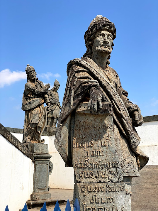 Após a conclusão das capelas, o Aleijadinho começou a esculpir os doze profetas, feitos em pedra sabão, que ornamentam a escadaria do Santuário do Bom Jesus. Os profetas são considerados a obra-prima do Aleijadinho. A série dos profetas é espetacular.