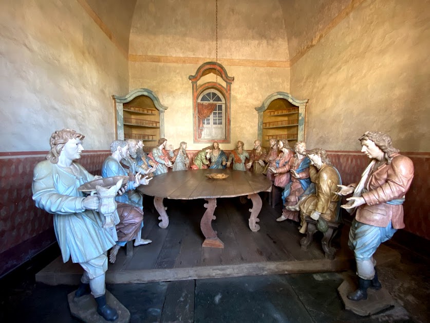 As capelas representam: A Última Ceia, a Cena do Horto, A Prisão de Cristo, A Flagelação de Cristo, A Coroação de Espinhos, A Subida ao Calvário e a Crucificação. A primeira capela é a da Última Ceia, uma verdadeira cena teatral que representa a ceia de Cristo.
