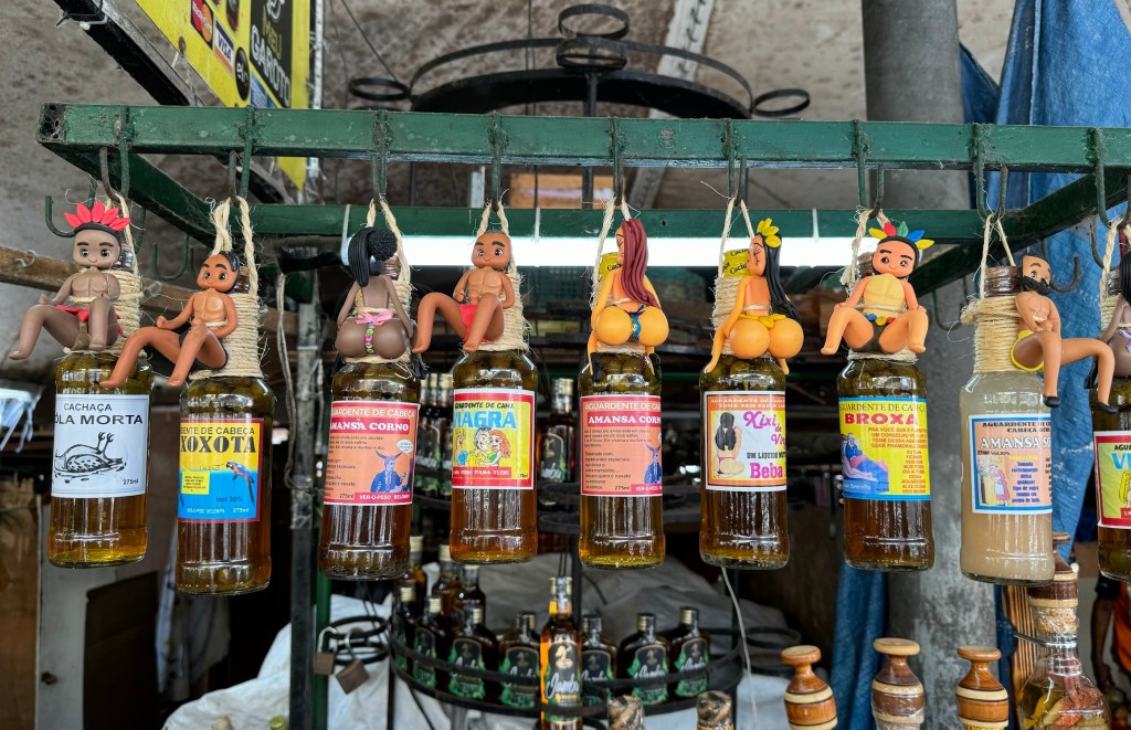 No Mercado Ver-o-Peso, uma das atrações mais curiosas são os perfumes e poções afrodisíacas, elaborados a partir de ervas, raízes e essências amazônicas. Esses produtos fazem parte da tradição popular e da medicina natural da região, sendo utilizados para atrair sorte, amor e proteção espiritual. Entre os mais famosos estão o “Chama Dinheiro”, que promete prosperidade, e o “Garrafada do Amor”, conhecida por seu suposto poder afrodisíaco. Os perfumes, como o “Cheiro de Patchouli”, têm fragrâncias marcantes e são muito procurados por turistas e moradores em busca dos segredos da cultura amazônica.