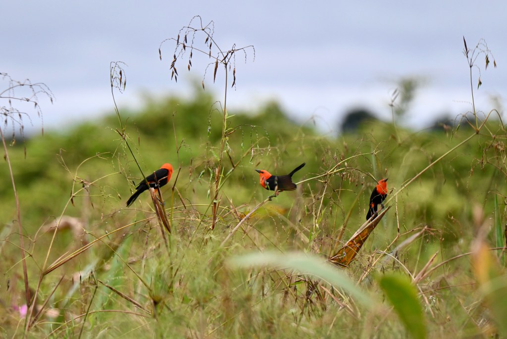 Seguindo pela estrada encontramos um bando de Cardeais-do-banhado. Um lindo pássaro de cabeça e peito com uma cor vermelho vivo e asas pretas, com até 25 cm de comprimento.