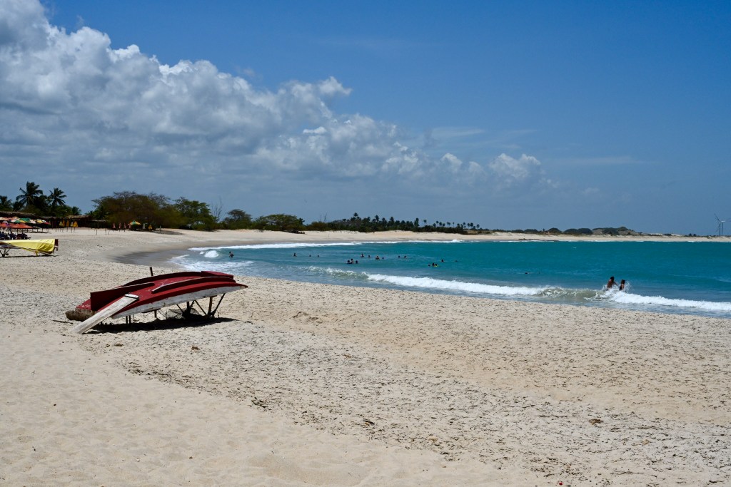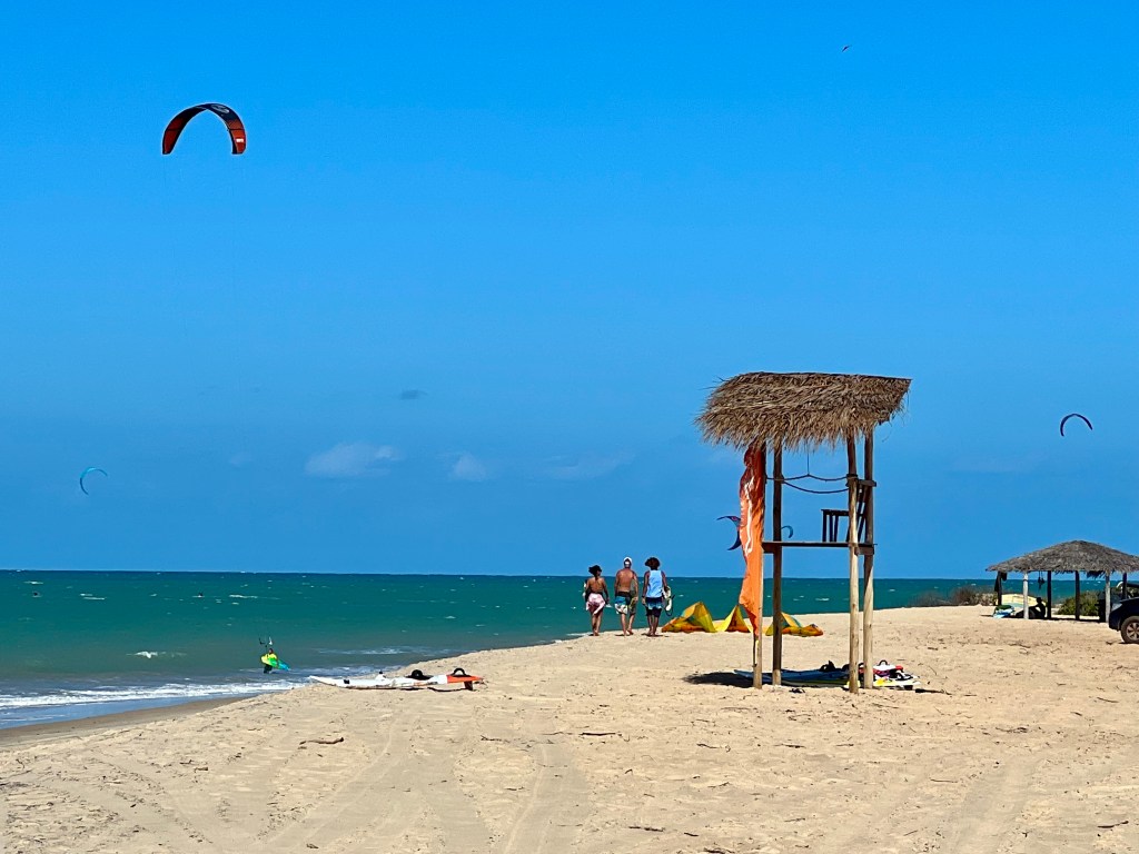 Saímos pela manhã para conhecer algumas praias de São Miguel do Gostoso. A maioria delas têm características muito parecidas. São praias com extensas faixas de areia e muito vento. No centrinho da vila fica a Praia da Xêpa, a mais movimentada e frequentada pelos moradores do lugar, logo depois da Praia do Cardeiro. Na sequência vem a Praia do Maceió, um pouco mais calma que as anteriores.