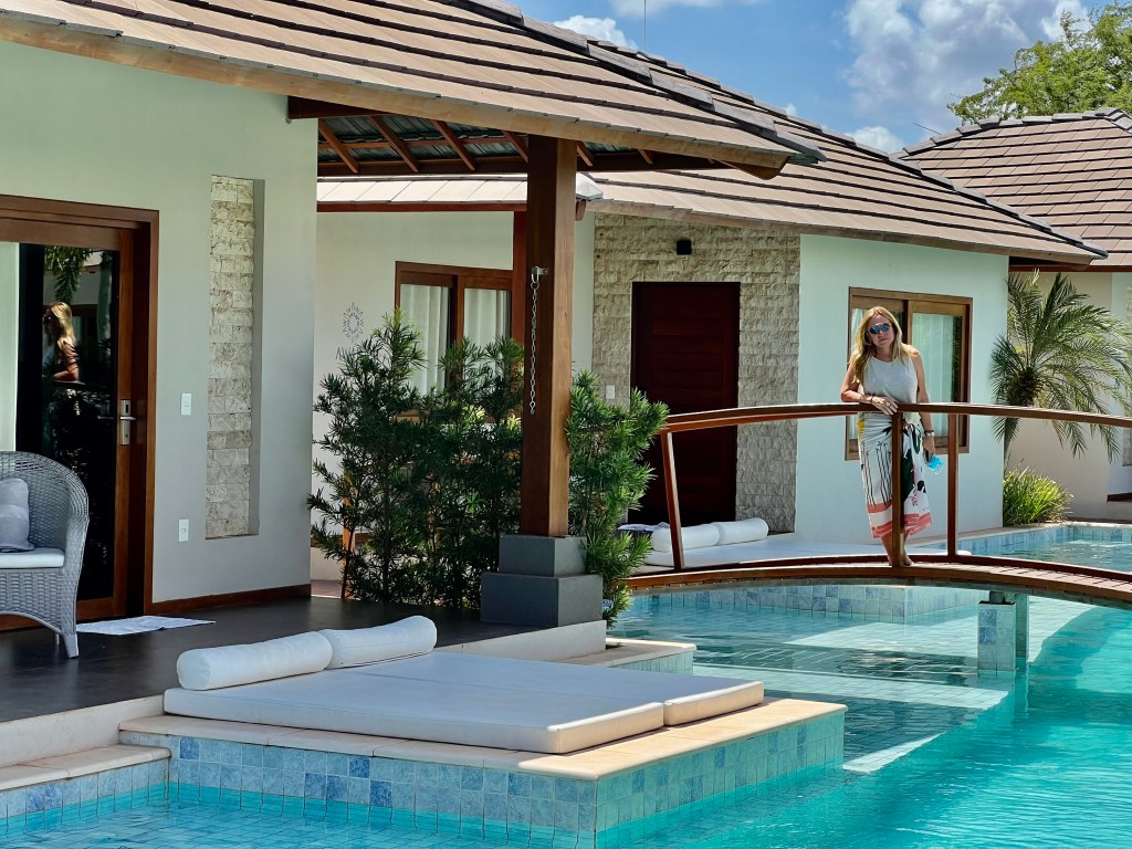 Chegamos em São Miguel do Gostoso no início da tarde e fomos direto para a Awara Pousada Boutique. Uma grata surpresa que a Via Alegria encontrou para nós. Uma pousada de charme bem localizada, na principal avenida da cidade, a 750 metros da Praia do Cardeiro, porém, fora da muvuca. A piscina do hotel passa em frente a todos os apartamentos. É quase privativa, pois o acesso aos quartos se dá pela parte do fundo dos apartamentos.