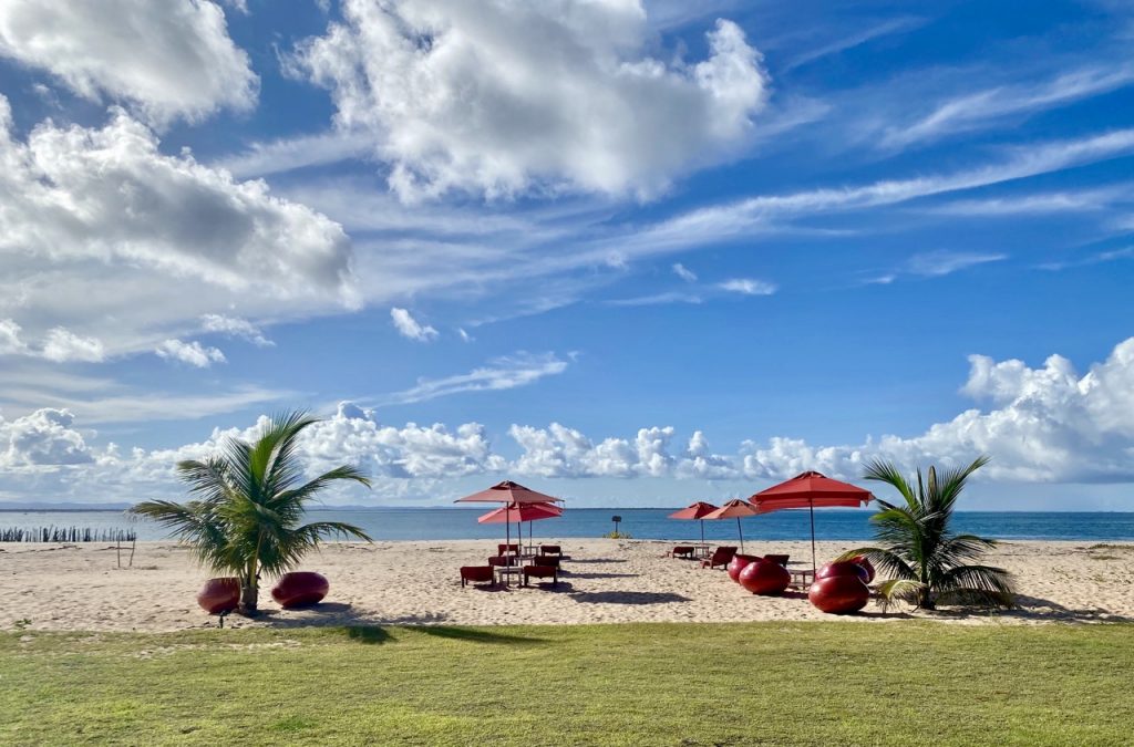 Voltamos à tarde para o hotel. Ainda deu tempo de tomar um último banho de mar na praia da Pousada Villa Balidendê. Do outro lado da Península de Maraú, dentro da Baía de Camamu, onde o mar é mais calmo e deserto.