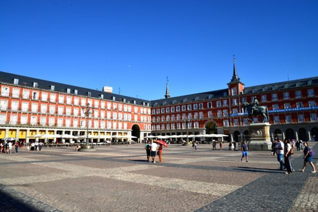 Passamos pelo centro histórico de Madri, onde destacam-se as grandes praças, Porta do Sol e a Plaza Mayor, além do Palácio Real.