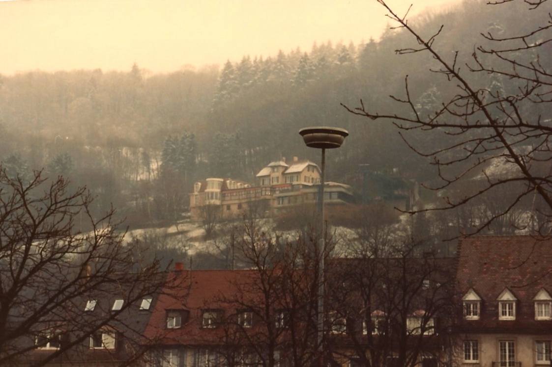 Saímos de Freilburg e seguimos através da Floresta Negra, com pinheiros altos e abetos, é uma das regiões mais pitorescas da Alemanha. A paisagem é de montanha, pois estamos na base dos Alpes Foi uma das paisagens mais bonitas que já havíamos visto até então. A floresta estava branca, coberta de neve, apresentando um visual de cartão postal incrivelmente lindo.