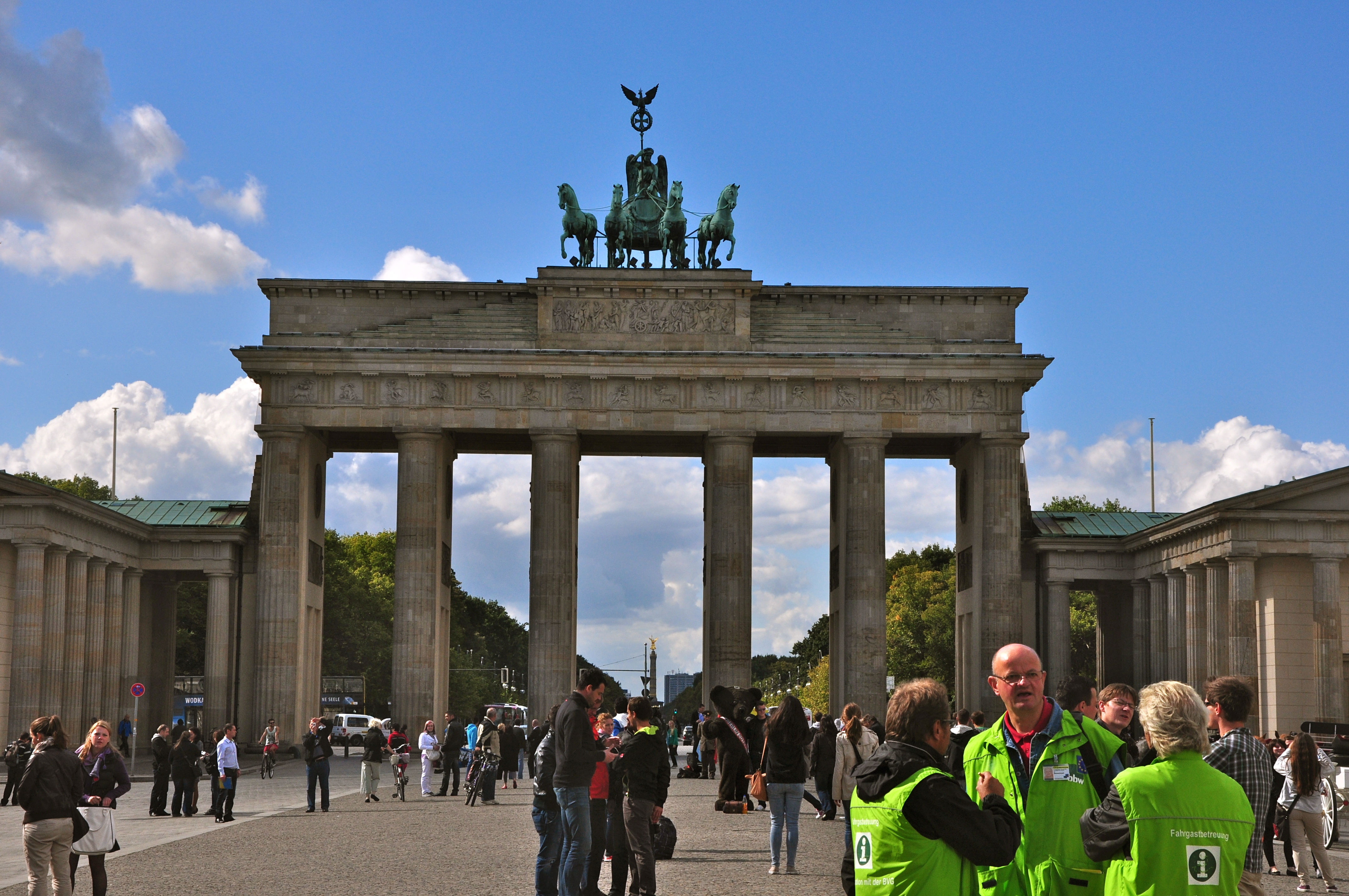 Saímos do Memorial do Holocausto e seguimos para o Portão de Brandemburgo, o maior símbolo da cidade. O imponente portão fica no final da Under den Linden, uma das principais avenidas da cidade. É uma estrutura neoclássica foi construída no final do século XVIII. Servia para coleta de impostos para aqueles que chegavam a Berlim com as suas mercadorias.