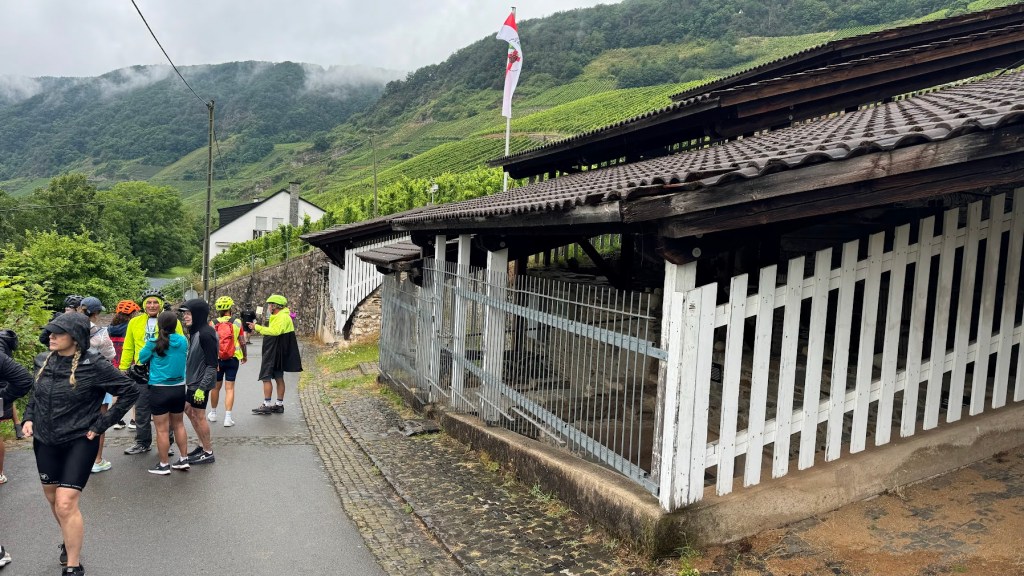 A partir de Bernkastel, o vale do Rio Mosel se abre e os vinhedos se estendem até o horizonte. Após 13 Km de pedal, fizemos uma primeira parada técnica na vilazinha de Wintrich e seguimos adiante.