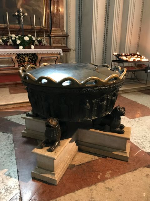 Como tudo em Salzburgo gira ao redor da história de Mozart, vale lembrar que ele foi batizado aí, e que tocava o órgão real à direita do altar-mor. A pia batismal de estanho, com mais de setecentos anos, continua na entrada da Catedral.
