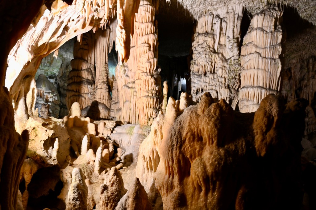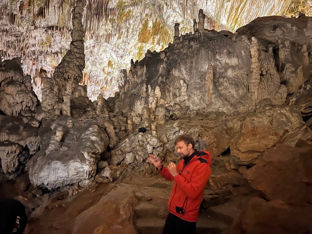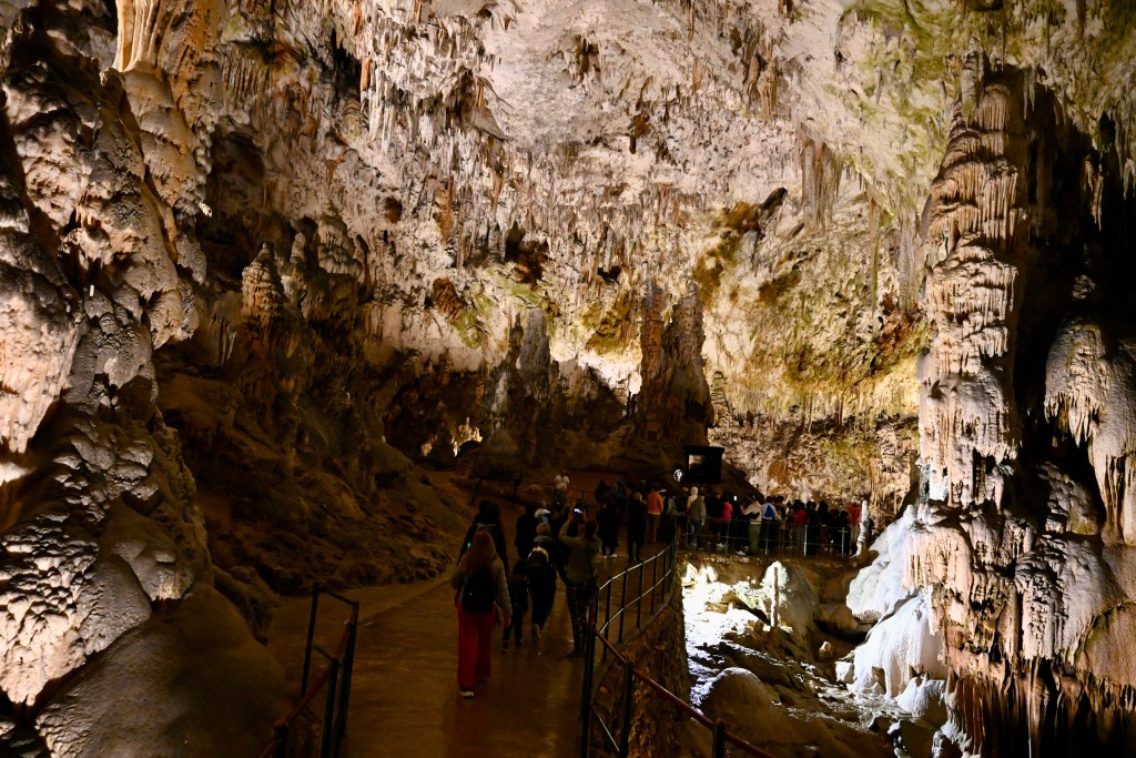 O tour no interior da caverna dura aproximadamente 1h30min. Começa com um trajeto de aproximadamente 3,5 km de trem que passa por túneis e galerias. Depois seguimos a pé, por mais 1,5 km observando mais de perto as estruturas. Os grupos são divididos e acompanhados por guias em vários idiomas. Seguimos o grupo de italianos. Existe também a opção de áudio guias em vários idiomas, inclusive português.
