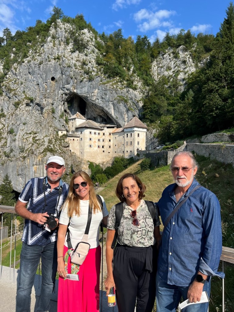 Encontramos com o guia do “To do in, Liubliana” em frente ao Hotel City, localizado há duas quadras do nosso hotel, no centro de Liubliana. Formamos um grupo de oito pessoas. Uma família de Hong Kong e o nosso grupo de quatro. Começamos o tour pelo Castelo Predjama, localizado há 62 km de Liubliana. Até lá seguimos pelas excelentes estradas da Eslovênia, comandados por um guia local, falando em inglês.