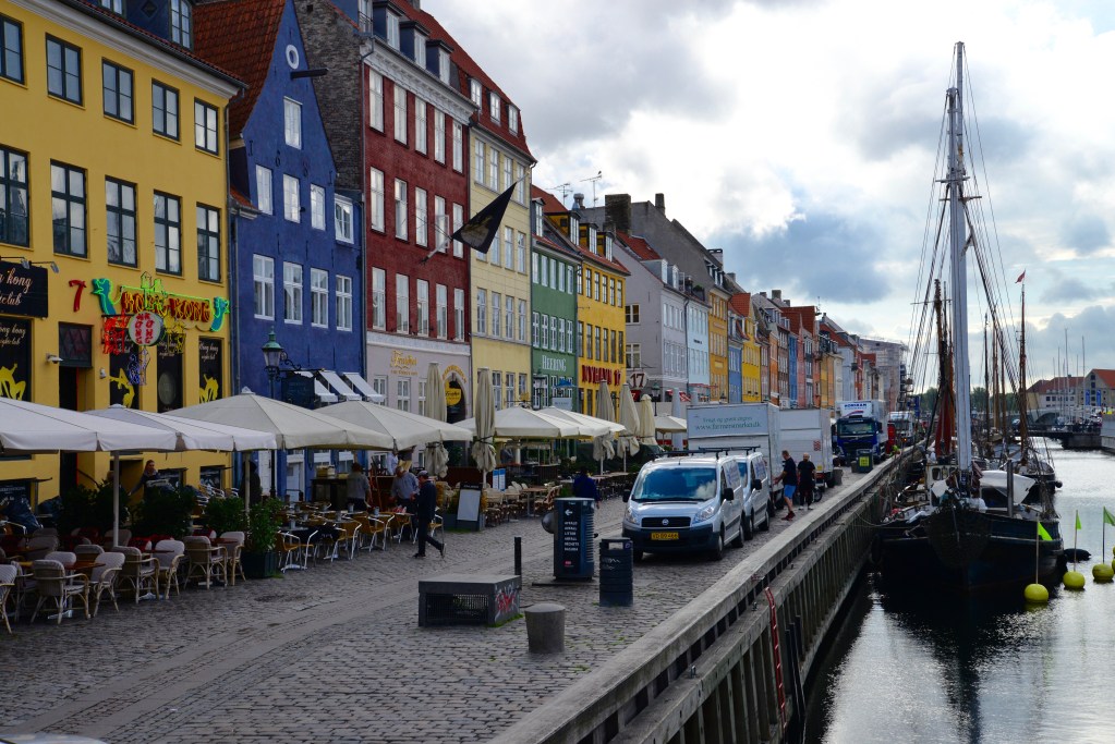Pela manhã saímos passeando pela Stroget. A rua é agitada, frequentada por turistas e locais, possui muitos artistas e músicos de rua. Restaurantes, cafés e bares completam as atrações da Stroget. Paramos na fábrica de porcelana dinamarquesa (um show). Seguimos até o calçadão Nyhaum, ao lado do porto, um estreito canal, com largas calçadas nas laterais, que mantém o estilo de arquitetura antiga da Dinamarca. As calçadas estão cercadas de casas coloridas ocupadas por bares e restaurantes. Os barcos ancorados no canal completam o visual da Nyhavn.
