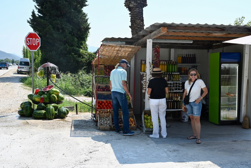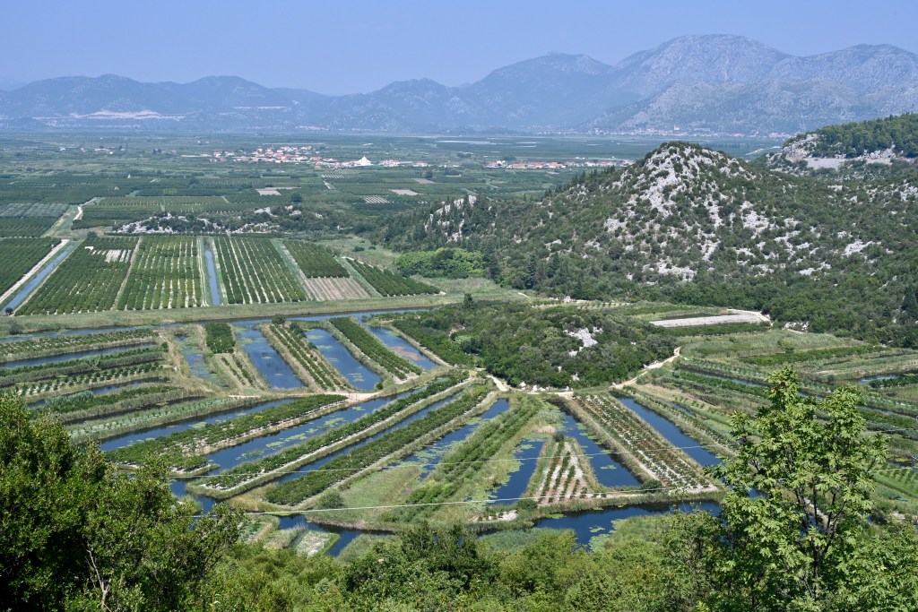 Paramos em alguns mirantes na beira da estrada para contemplação dos vales férteis dessa região ao sul da Croácia, com grandes plantações de uvas e vinícolas importantes. A Croácia é um grande produtor de vinhos. Ao longo desse caminho, a costa da Croácia é interrompida por uma pequena faixa territorial da Bósnia e Herzegovina. Hoje não é mais necessário entrar no território da Bósnia, pois a Ponte Peljesac faz a ligação entre dois territórios croatas e desvia do território bósnio, chegando a Neum e seguindo para Dubrovnik, no extremo sul da Croácia.