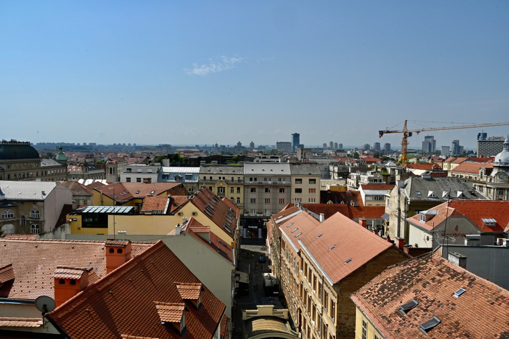 Saímos pela manhã circulando por Zagreb. Fizemos um passeio panorâmico, por conta própria, começando pela Cidade Baixa, o coração comercial da capital. Zagreb é dividida em Cidade Baixa e Cidade Alta. Surgiu a partir da junção de duas cidades medievais e rivais, que foram unidas a partir de 1850 e hoje são bairros da capital da Croácia. Kaptol, a Cidade Alta e Gradec, a Cidade baixa.