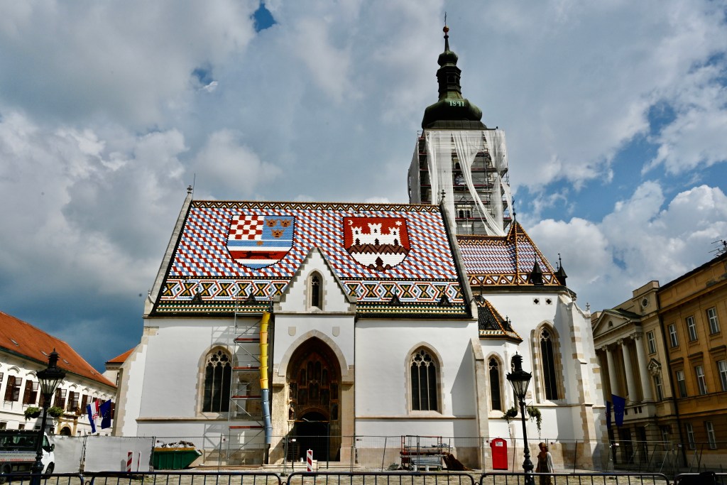 Passamos pela Igreja der São Marcos, em estilo gótico, a mais pitoresca da cidade, por conta do seu telhado com cerâmicas coloridas. A Igreja de São Marcos fica em Gradec (Cidade Baixa) e é originalmente do século XIII. A construção atual é de 1882.