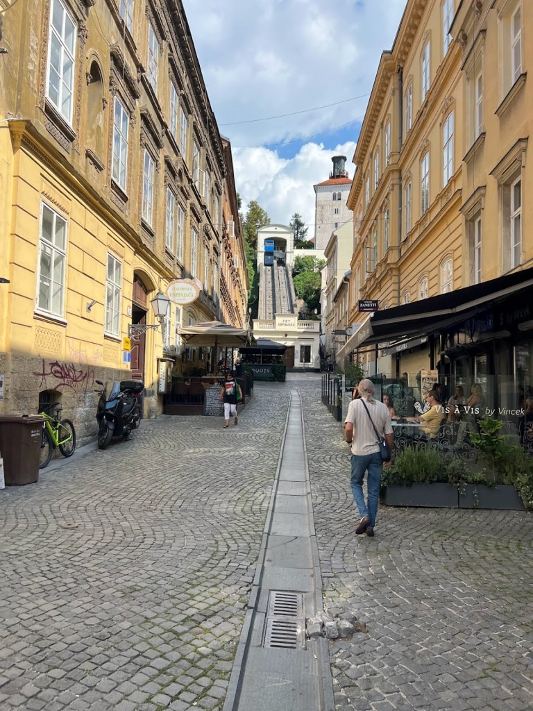 Em seguida pegamos um funicular que liga a Cidade Baixa à Cidade Alta. Gradec a Kaptol.