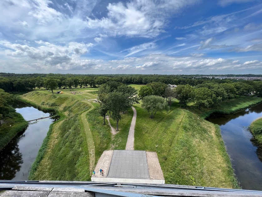 Depois do Cemitério dos soldados canadenses, seguimos pedalando até o Fort de Roovere, localizado próximo à cidade de Halsteren, numa situação especial e que conta muito sobre a Holanda. É um forte de terra, concebido a partir de um complexo plano de defesa contra invasores espanhóis, imaginado por Maurício de Nassau em 1628, durante a Guerra dos Oitenta Anos, que tomava partido da grande quantidade de diques e canais do território holandês.