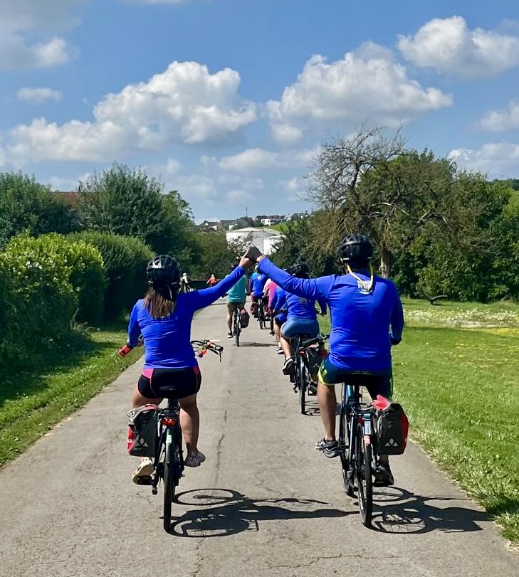 Sete quilômetros adiante, paramos na cidadezinha de Oberllig, na divisa entre a Alemanha e o Luxemburgo. Foi um momento para receber notícias sobre o acidente com a Márcia. Aconteceu aí o terceiro incidente do dia. Um pneu furado na bicicleta de Luciene, outra companheira de viagem. O nosso guia, Jen, fez a força do pneu e seguimos a viagem.