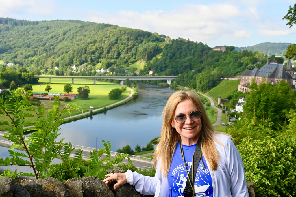 Estávamos ancorados em Saarburg, uma cidadezinha típica dessa região da Renânia, na Alemanha, que ainda preserva uma áurea medieval. Fundada em 964, quando o Conde Siegfried de Luxemburgo tomou posse de uma montanha às margens do Rio Saar e construiu por lá o seu castelo fortificado. Começamos o dia visitando o Castelo de Saarburg. Subimos uma grande escadaria que ficava exatamente ao lado de onde o Magnifique I estava ancorado.