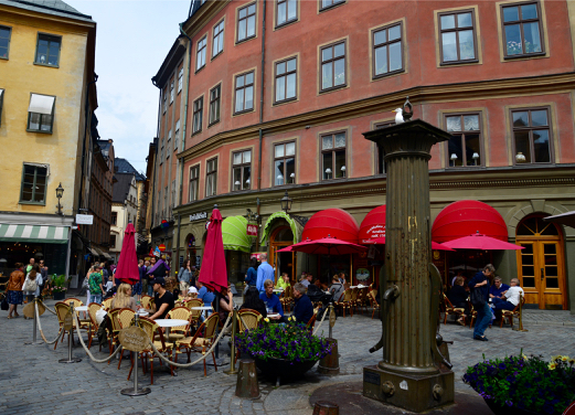 A Cidade Velha é cheia de bares, restaurantes, ateliês e lojinhas interessantes que vendem lembranças para turistas. No centro está a Praça Grande (Stortorget), onde ficava a sede medieval do Município de Estocolmo. Escolhemos um cavalinho sueco de lembrança para levarmos de volta para o Brasil. Os camponeses faziam esses cavalinhos para os seus filhos e costumavam decorá-los com características das suas comunidades. Virou um dos símbolos do país.