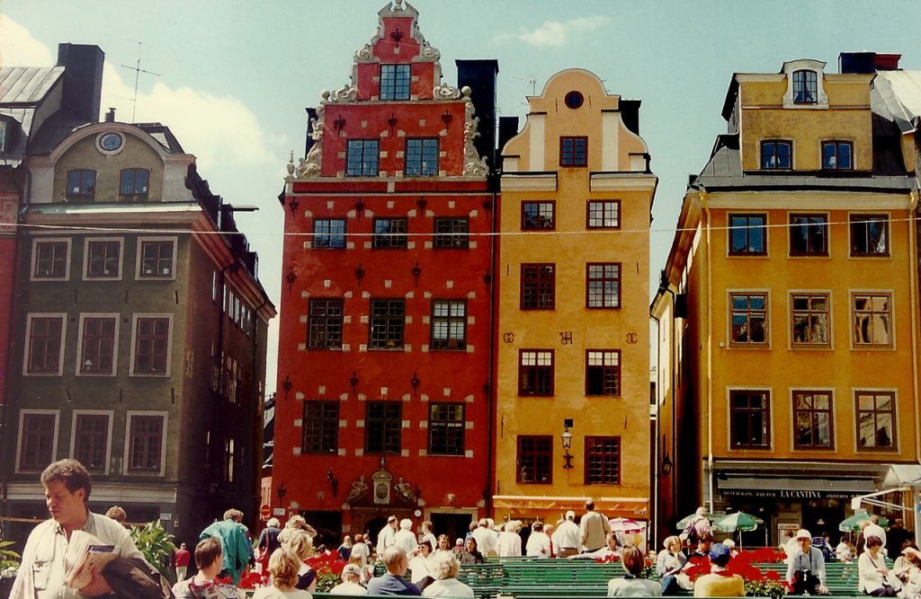 A Gamla Stam (Cidade Velha) é a maior das ilhas de Estocolmo e o coração histórico da cidade. Foi aí que a cidade nasceu. Seguimos andando pelas ruelas estreitas e tortuosas dessa parte medieval da cidade, com casas coloridas, que fica em volta do majestoso Palácio Real.