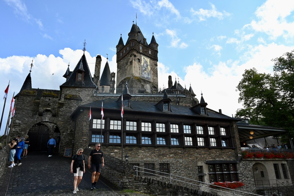 Após o embarque de todos os passageiros, tivemos uma reunião de boas-vindas e apresentação da tripulação, e seguimos com a guia Maaiken para um passeio à pé́ pelo centro da cidade. Atravessamos a ponte, pegamos uma van que faz um serviço de transporte do centro da cidade até o Castelo de Reichsburg, que se ergue imponente ao lado de Cochem, sobre o vale do Rio Mosel, com encostas cobertas de vinhedos.