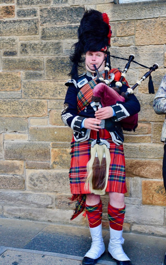 Saímos do Castelo e seguimos andando pela Royal Mile, onde muitos turistas circulam a todo momento. Artistas de rua e tocadores da gaita-de-fole escocesa aparecem em vários pontos da avenida. Os gaiteiros geralmente estão vestidos em trajes típicos da Escócia, onde destaca-se o kilt, as saias escocesas que os homens usam, com tecido xadrez que identifica os tartãs dos clãs das Terras Altas.