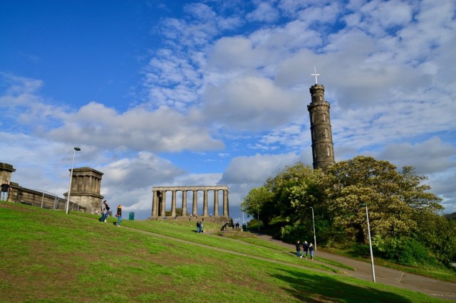 No alto da Calton Hill existem vários edifícios históricos imponentes. Dentre eles destaca-se a acrópole inacabada que ajuda a denominar Edimburgo como a “Atenas do Norte”. O local é procurado por jovens que costumam ir até ali para observar o pôr do sol.