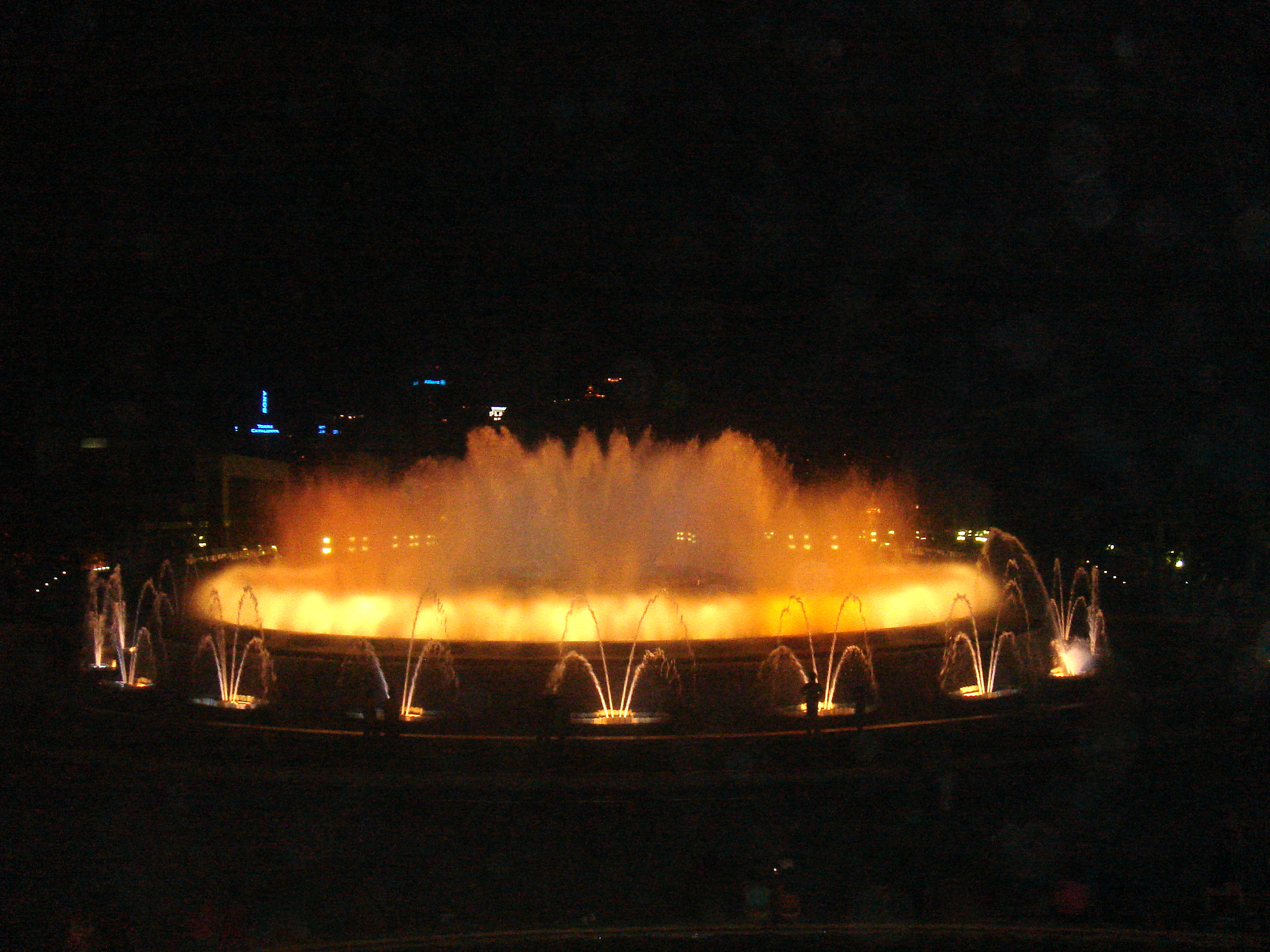 A Avenida que leva a Montjuic possui uma grande fonte luminosa que é uma das atrações de Barcelona.