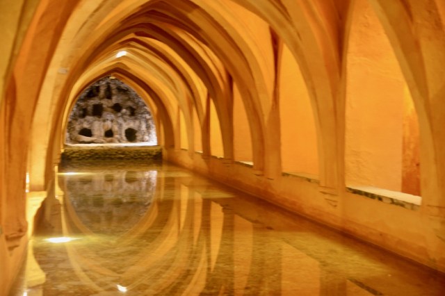 A última visita que fizemos no interior do palácio, foi aos banhos reais. Lanchamos aí e saímos para o Bairro da Santa Cruz, que se caracterizou no passado como um local de moradia dos judeus de Sevilha.