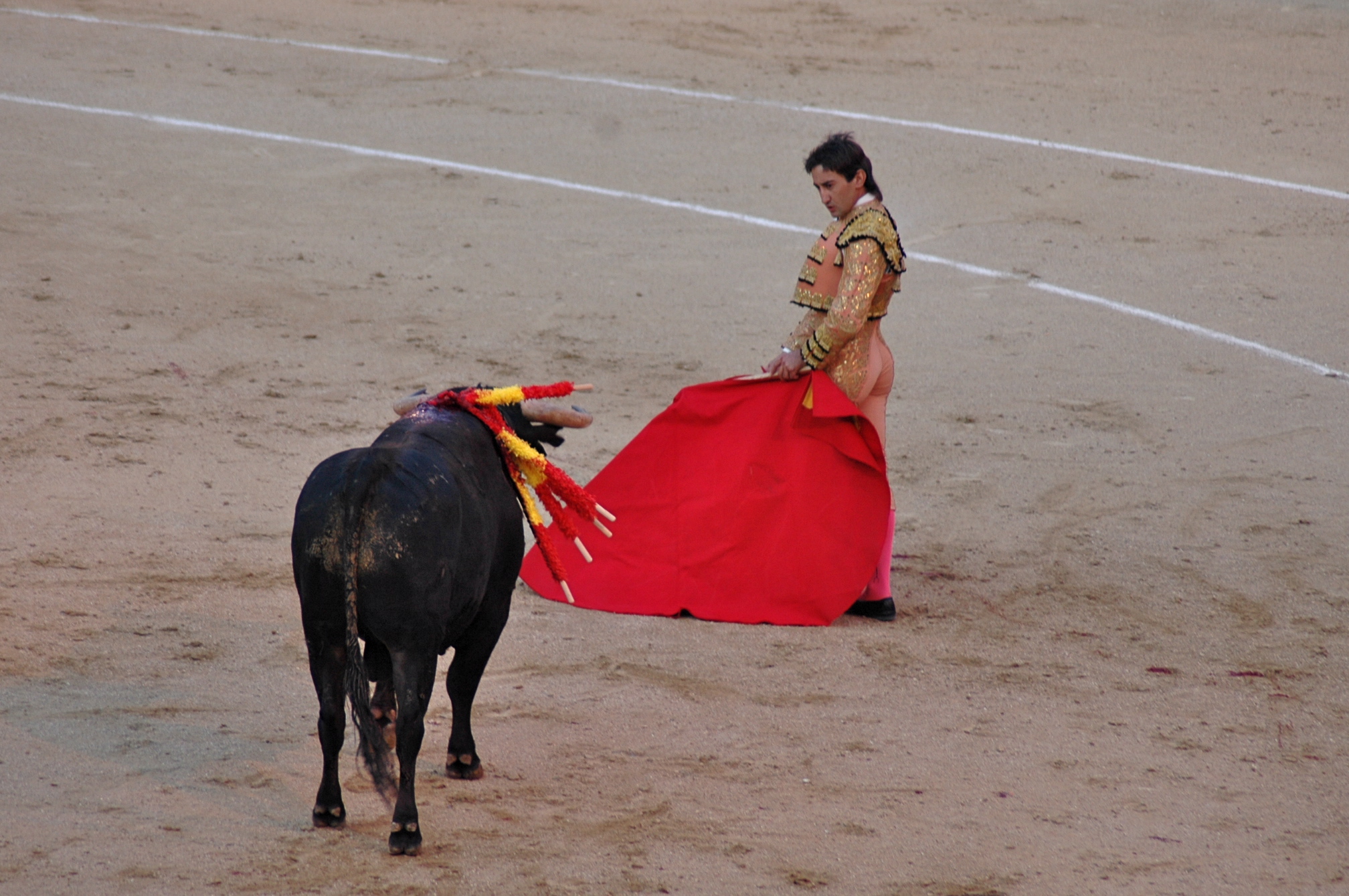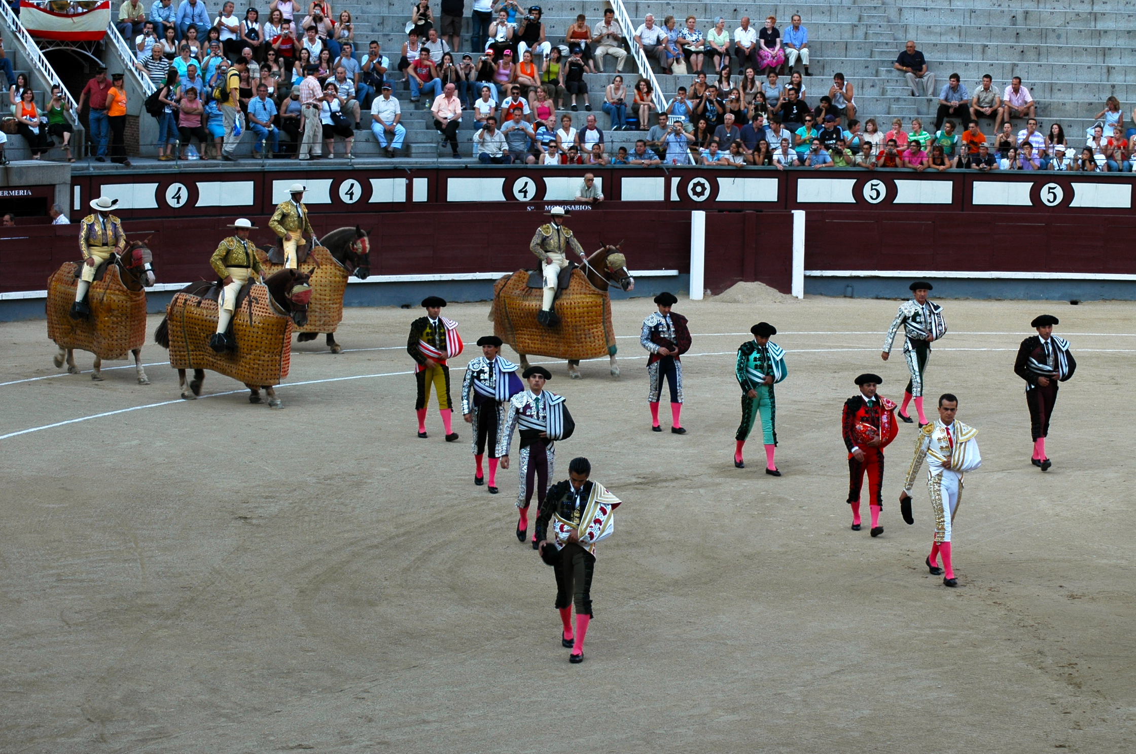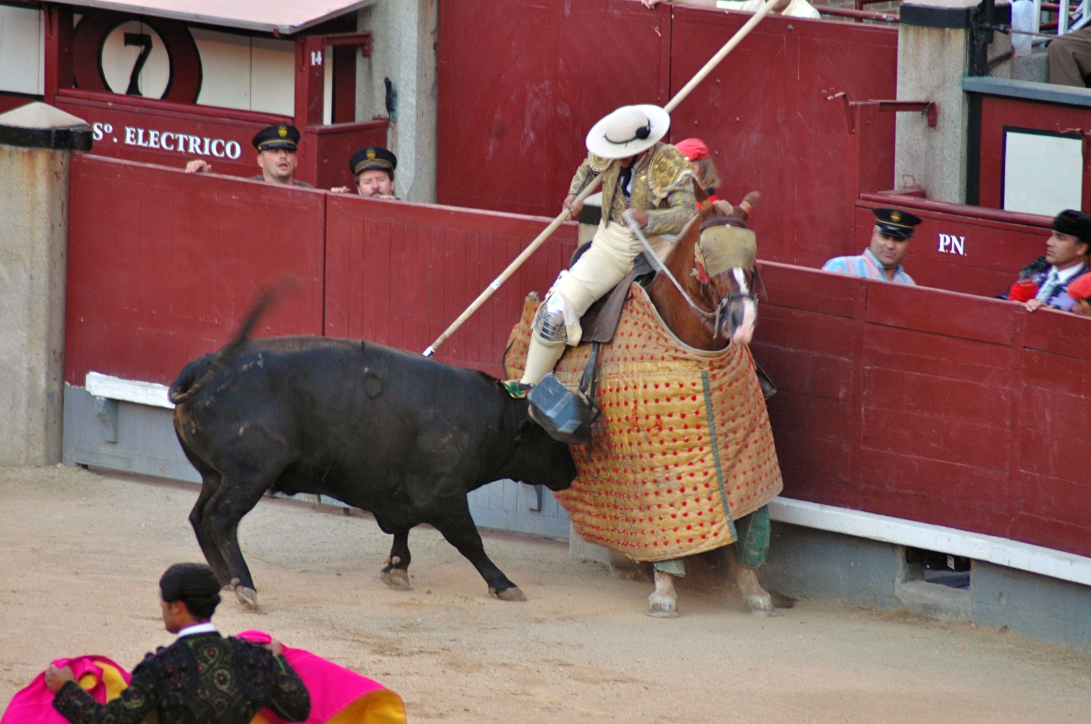 Os cavaleiros se aproximam e lançam lanças no dorso do touro, uma após a outra. O objetivo é claro: enfraquecer o animal. Só quando ele está visivelmente debilitado, é que o toureiro volta à arena para fazer as manobras mais arriscadas, que agora não são tão arriscadas assim. O touro já não tem mais forças para reagir.
