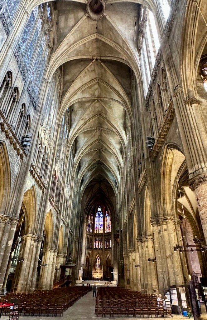 A fachada gótica e o incrível conjunto de vitrais impressionam por dentro e por fora da Catedral. Paramos o táxi ao lado da igreja e tivemos muito pouco tempo para correr e tirar algumas fotos da fachada e da área interna da Catedral. A nave principal possui mais de 40 metros de altura. A grande quantidade de vitrais ilumina bastante o seu interior.