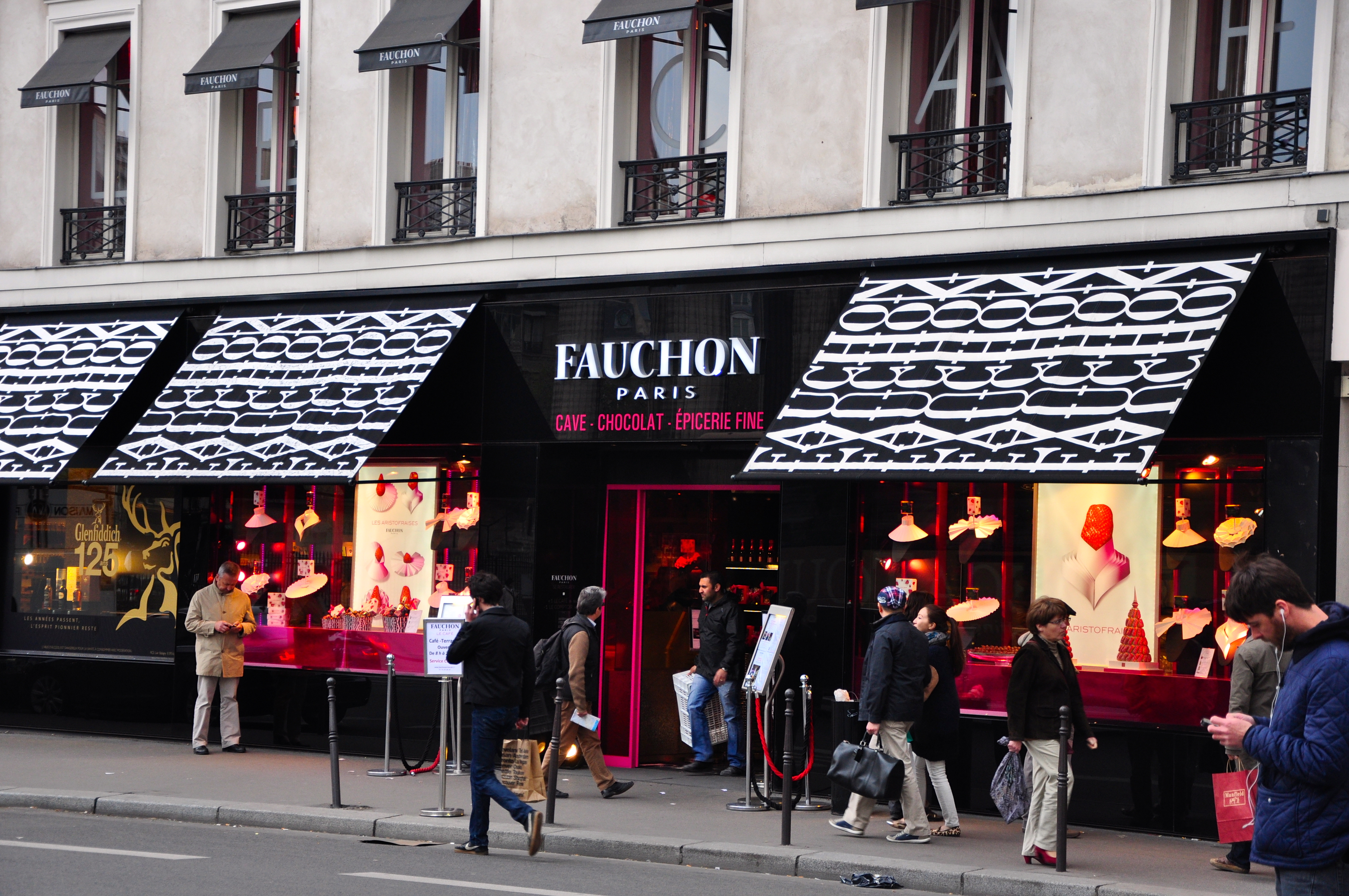Atrás da Igreja de La Madeleine fica a delicatessen Fauchon, famosa na cidade e bastante procurada por turistas. Especializada em chocolates, patês e outros produtos sofisticados. Uma visita à Fauchon vale a pena inclusive pelos “macarons”, uma espécie de doce tipicamente francês com vários sabores e que é uma febre na cidade.