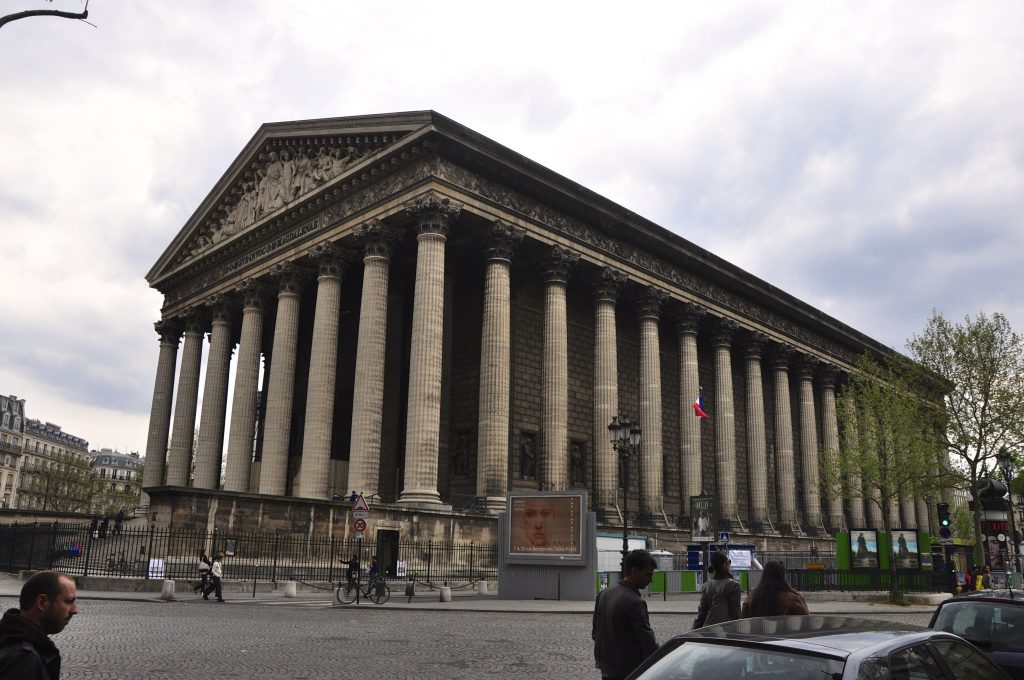 Entre o início da construção e a sua consagração chegou a ser cogitado a sua transformação em banco, bolsa de valores ou teatro. A sua arquitetura é inspirada num templo grego. A igreja em homenagem a Santa Maria Madalena, possui um interior ricamente decorado com belas esculturas douradas e de mármore rosado.