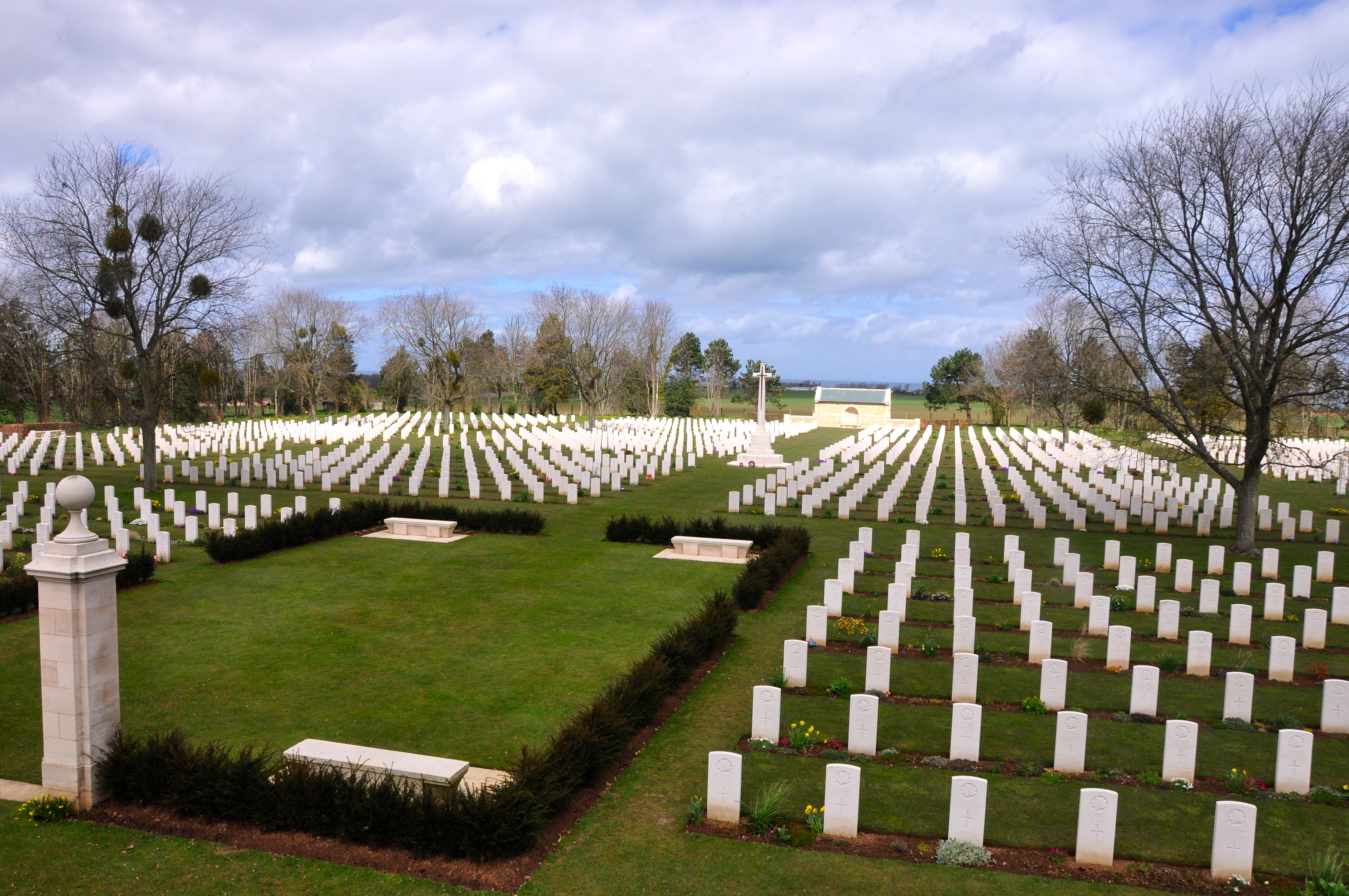 Saímos do Museu do Bunker Alemão e seguimos viagem, parando para uma homenagem e contemplação no cemitério dos soldados canadenses mortos na Operação Overlord, aí nas proximidades da Praia de “Sword”.