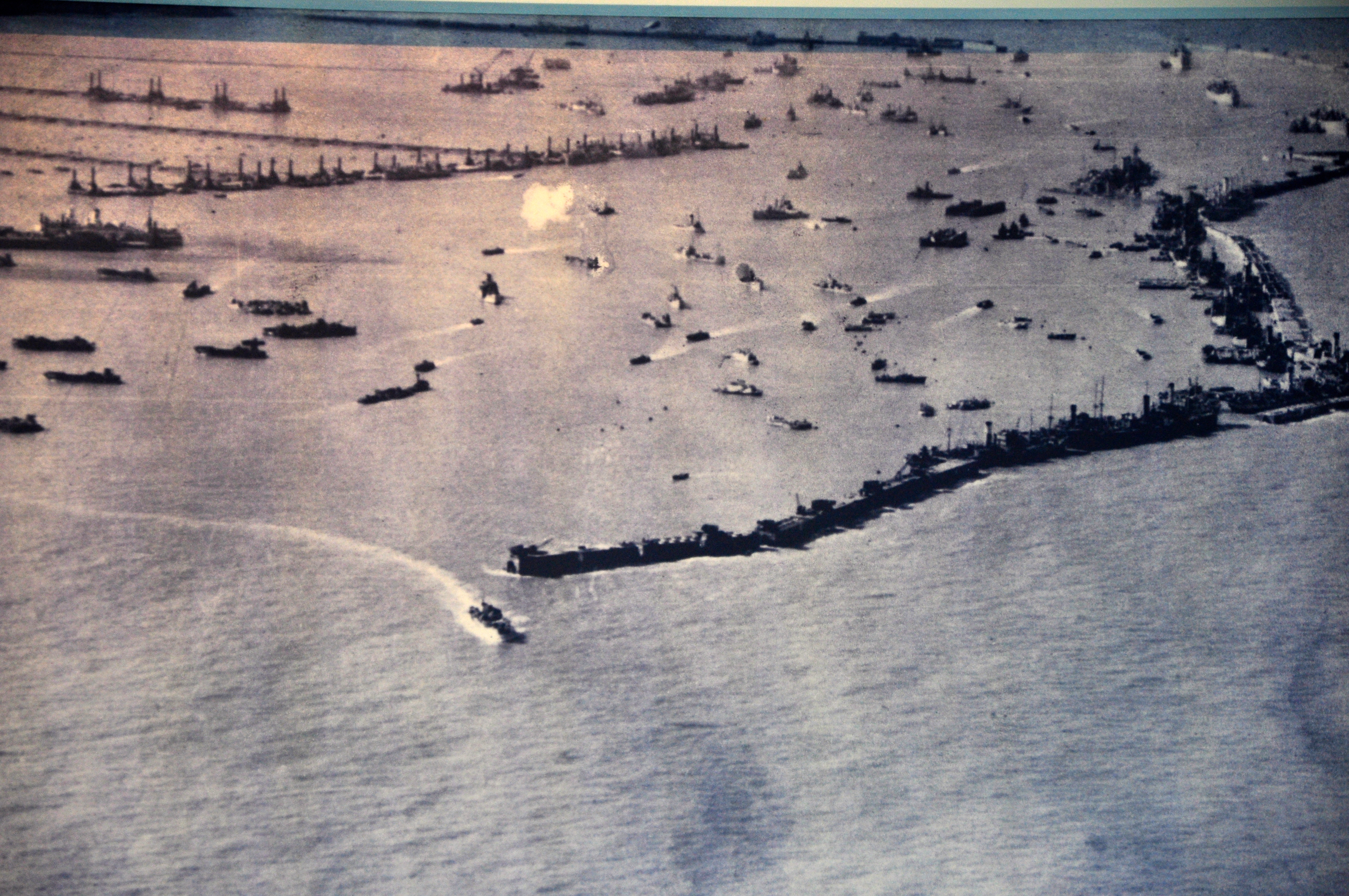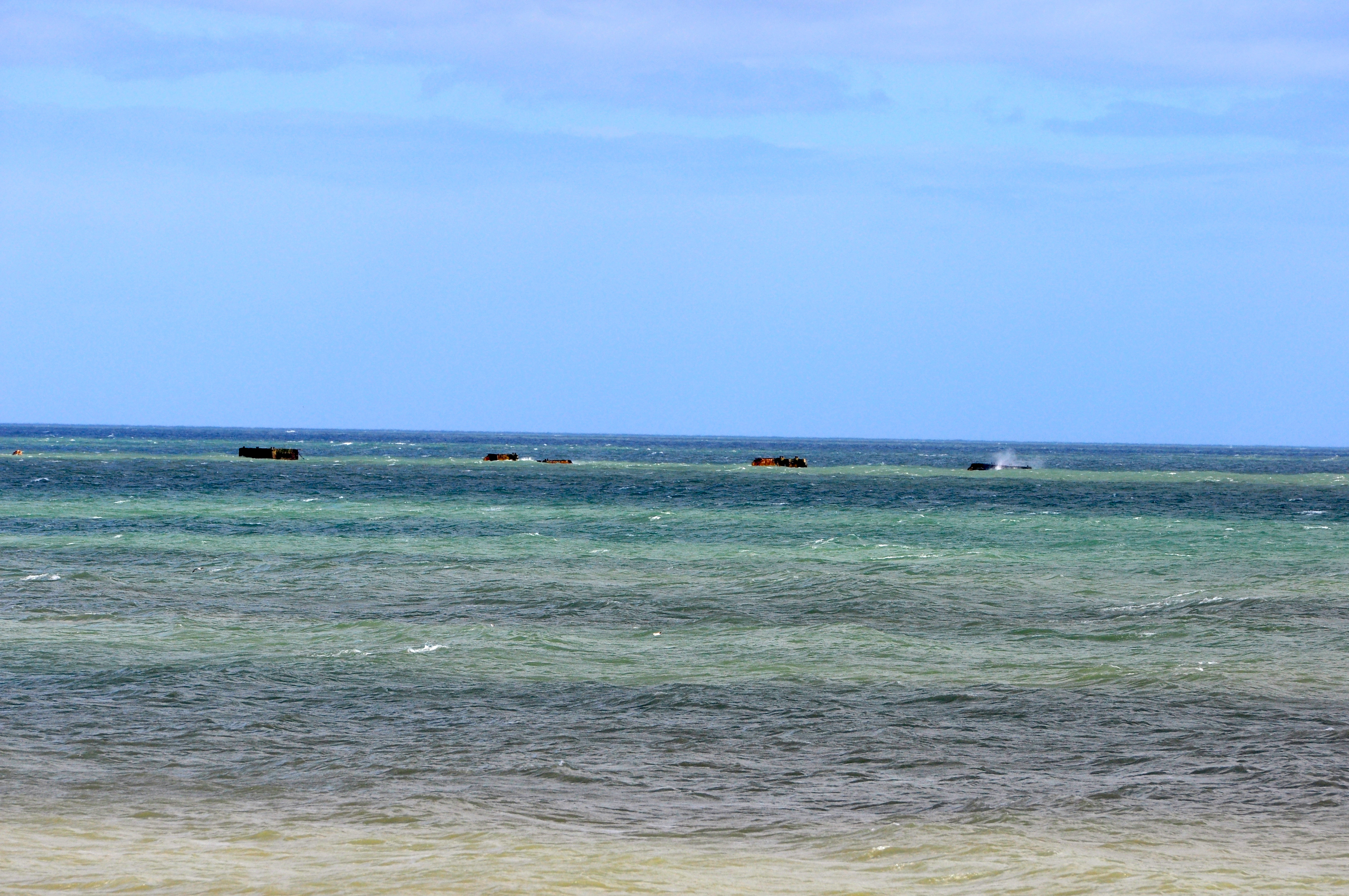 Logo depois, os primeiros portos artificiais, verdadeiros gigantes de concreto pesando entre 3000 e 6000 toneladas cada, com 220 pés de largura, 60 pés de altura e 52 pés de profundidade, foram chegando. Foram chamados de Fênix. Atravessaram o Canal da Mancha a uma velocidade de 4 milhas por hora, movimentados por três rebocadores cada. Foram 115 no total, foram planejados desde 1942, construídos na Inglaterra e transferidos para a costa da França no Dia D. Ainda hoje, partes remanescentes desses portos podem ser observados na Praia de Arromanches.