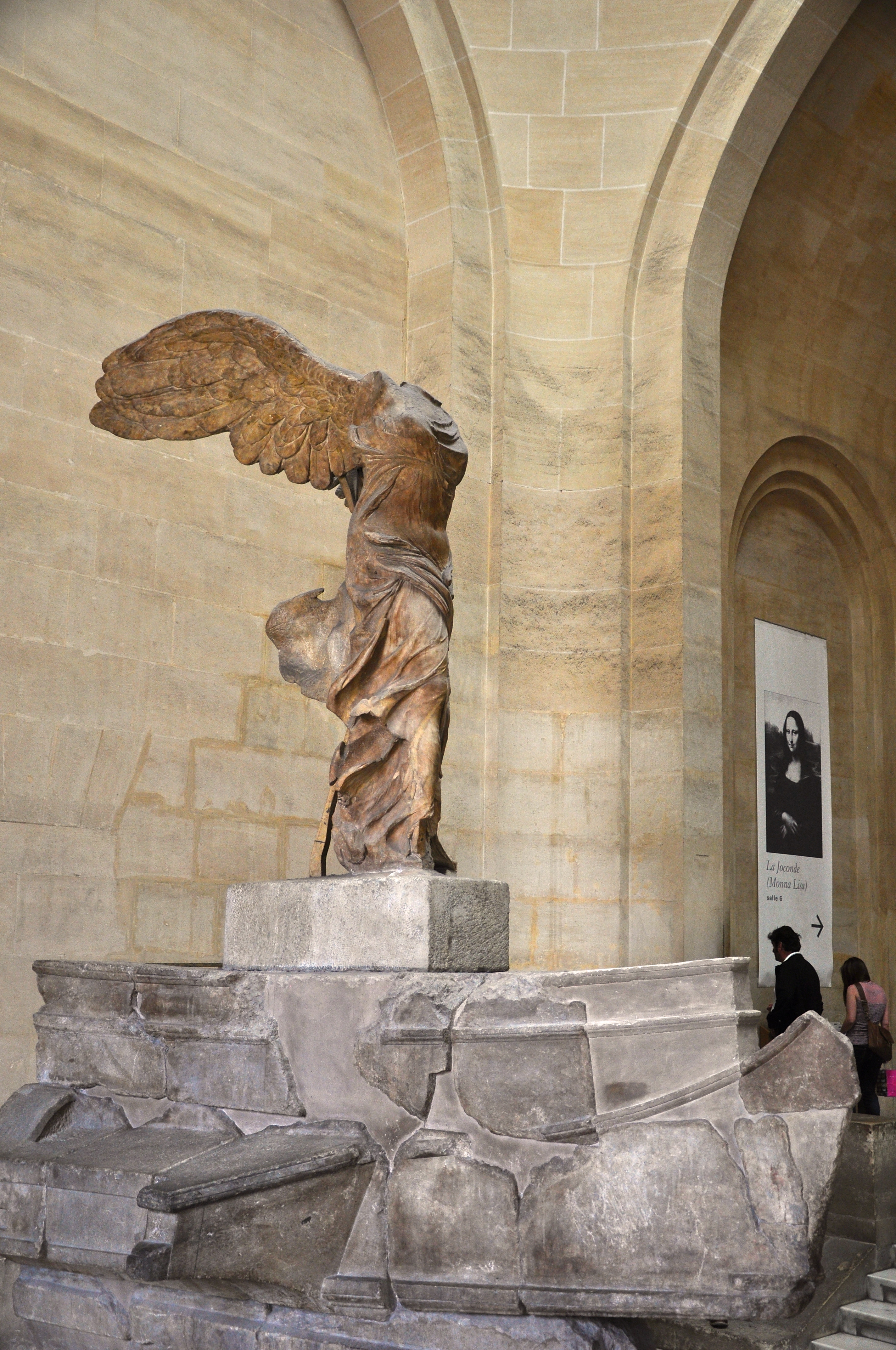 A outra “dama” nobre do Museu do Louvre é a Vitória de Samotrácia, uma estátua, também do período helenístico, que demonstra toda a leveza da escultura grega. Apesar da estrutura maciça ela aparece deslizando suavemente e cortando o vento. A estátua representa a Deusa Grega Nike (Vitória) e que foi descoberta em 1863, nas ruínas do Santuário dos grandes Deuses de Samotrácia.