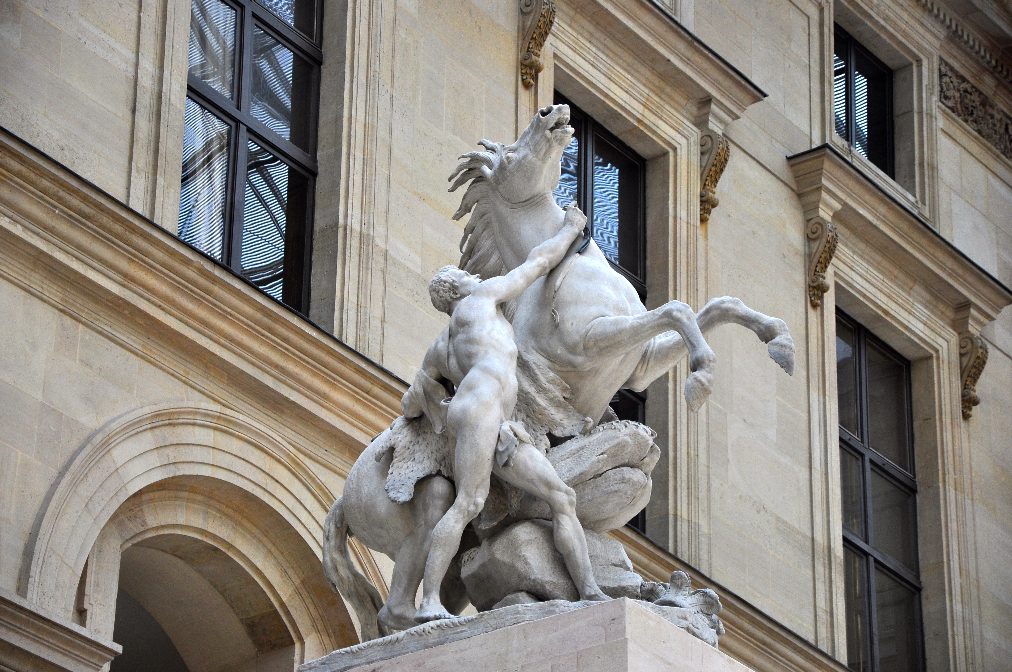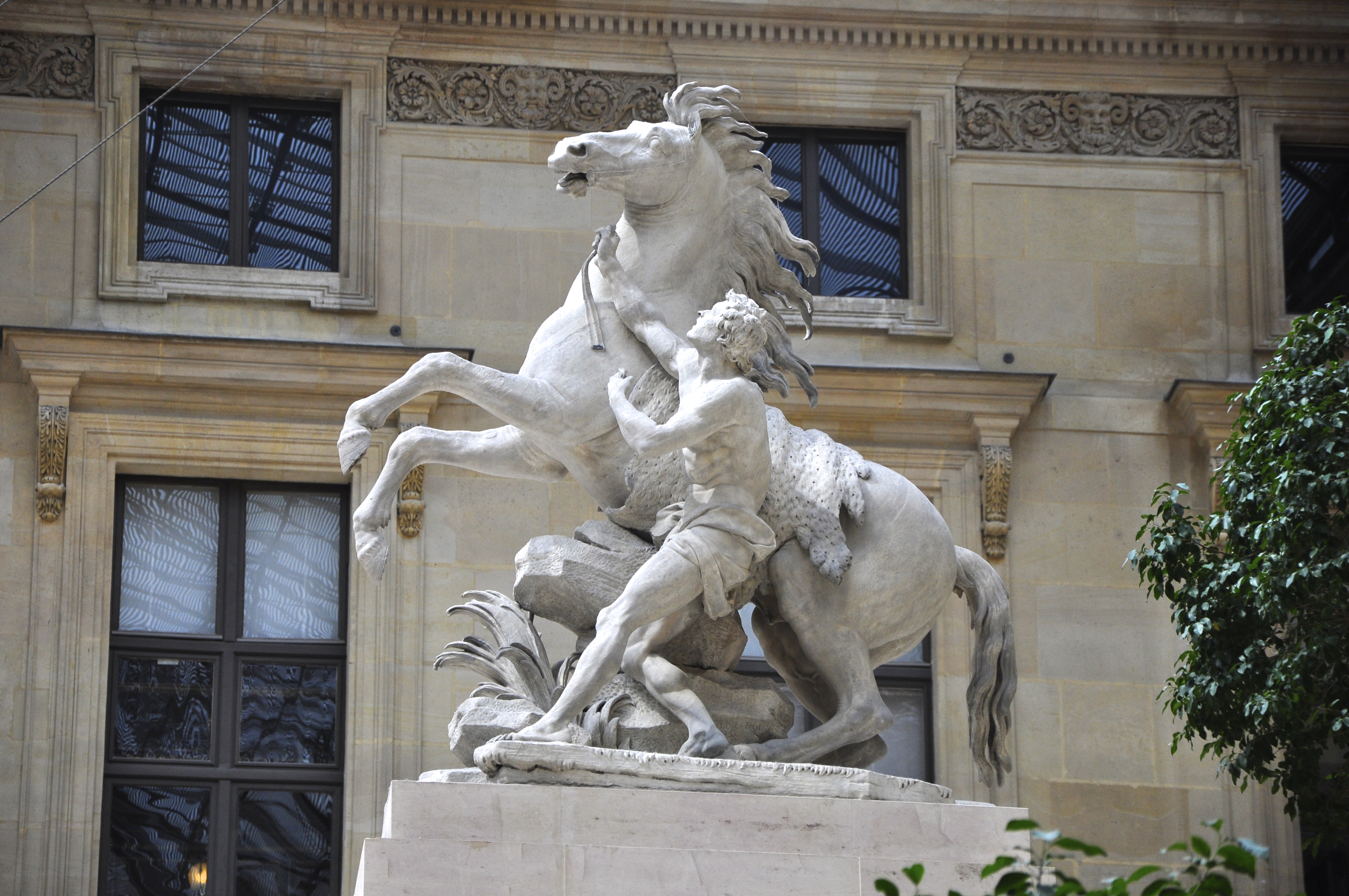 Na área aberta da ala Richelieu aparecem os originais dos fantásticos “Cavalos de Marly” de 1745, esculpidos por Guillaume Coustou, que aparecem relinchando. Os Cavalos faziam parte da decoração do Chateau Marly e foram levados para Paris em 1794, durante a Revolução Francesa onde foram instalados na Place de la Concorde, na entrada da Avenida de Champs Élysées. Hoje existem aí, cópias desses cavalos, os originais são esses que estão no Louvre.