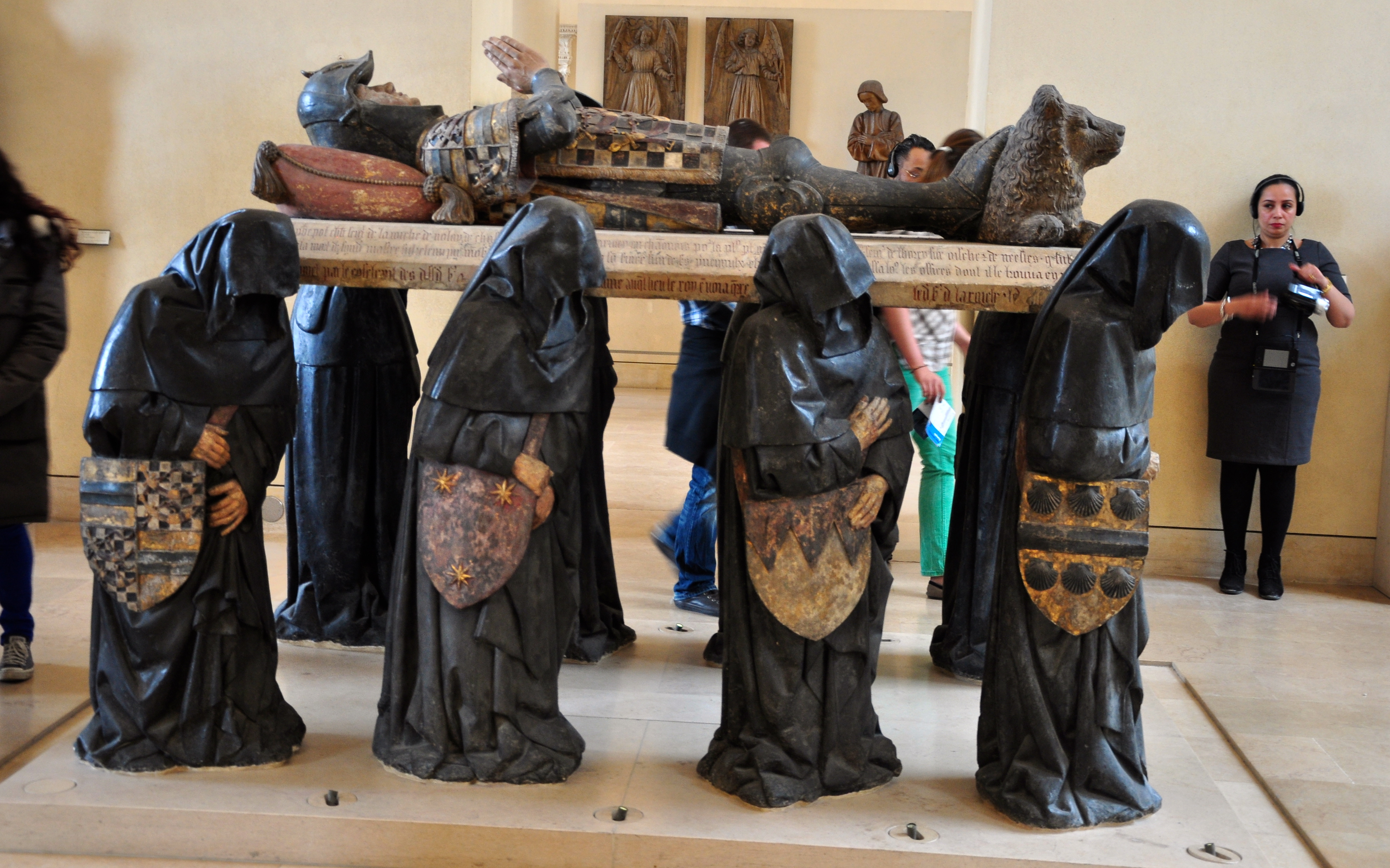 Na área dos escultores Franceses, chama a atenção a maravilhosa Tumba de Philippe Pot (um alto funcionário da Borgonha), com seus oito pranteadores encapuzados. O contraste de cores dos materiais utilizados engrandecem a escultura.