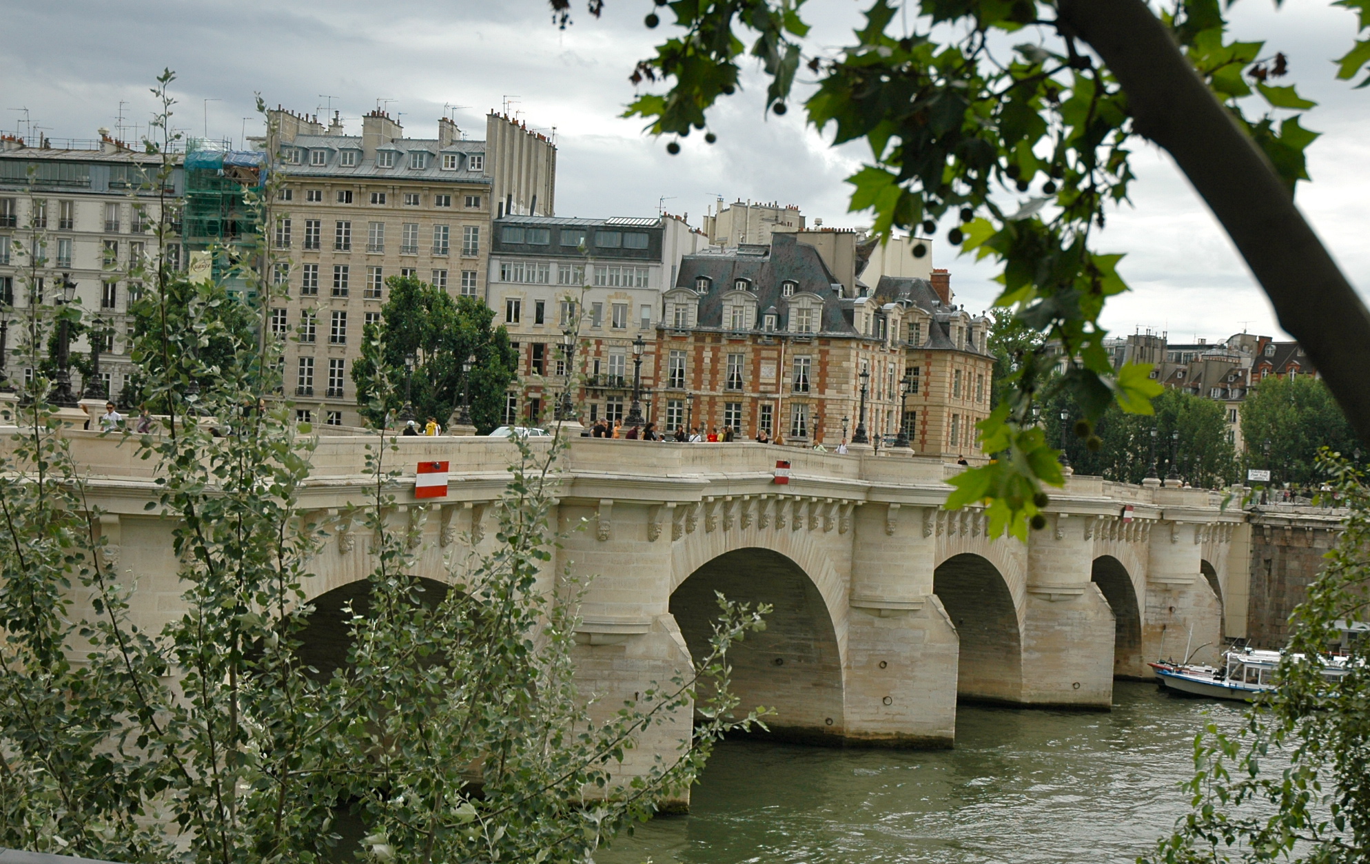 No passeio do Bateaux Mouche, cruzamos por baixo da Pont Neuf (Ponte Nova), construída pelo Rei Henrique II em 1577. A Pont Neuf liga os dois lados do Sena, a Rive Gauche (margem esquerda) à Rive Droite (margem direita), passando pela Ilha de La Cité. Seguiu o modelo arcos romanos e pela primeira vez não foram construídas casas sobre pontes. Acredita-se para não esconder a visão do Louvre.
