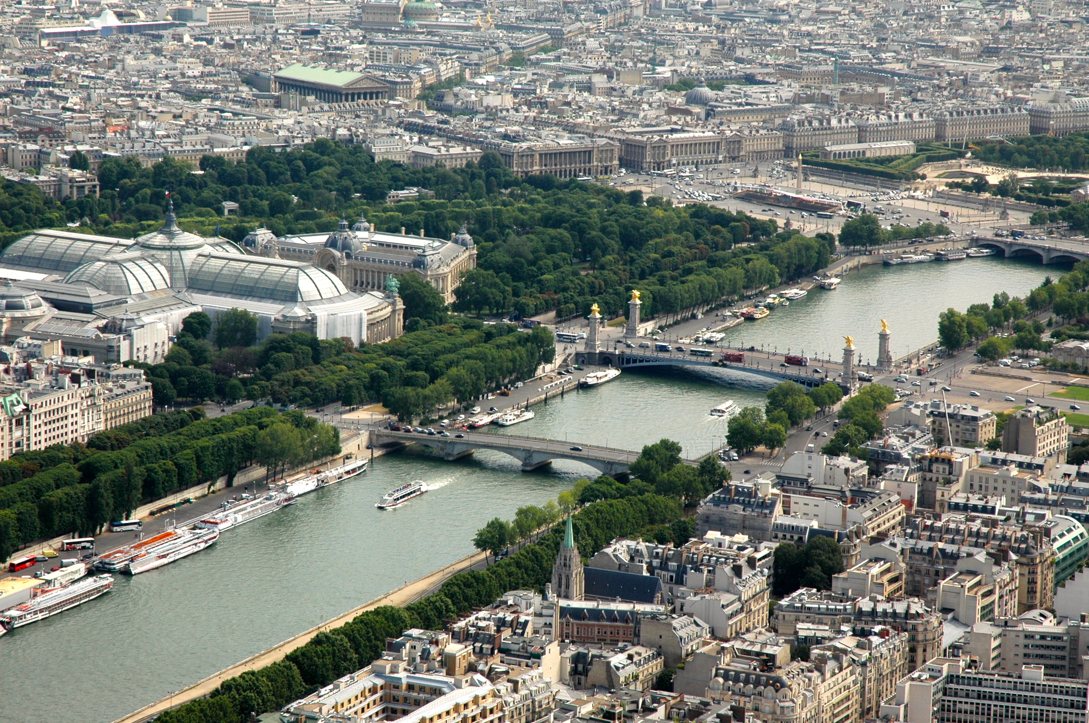 Outra paisagem de destaque que vemos do alto da Torre Eiffel é o Rio Sena, a principal artéria hidrográfica de Paris, que foi importantíssima na fundação e no crescimento da cidade. O Sena é o principal ponto de referencia da cidade. As distâncias são medidas a partir dele e Paris está dividida em duas partes. A margem direita e a margem esquerda do Rio Sena.