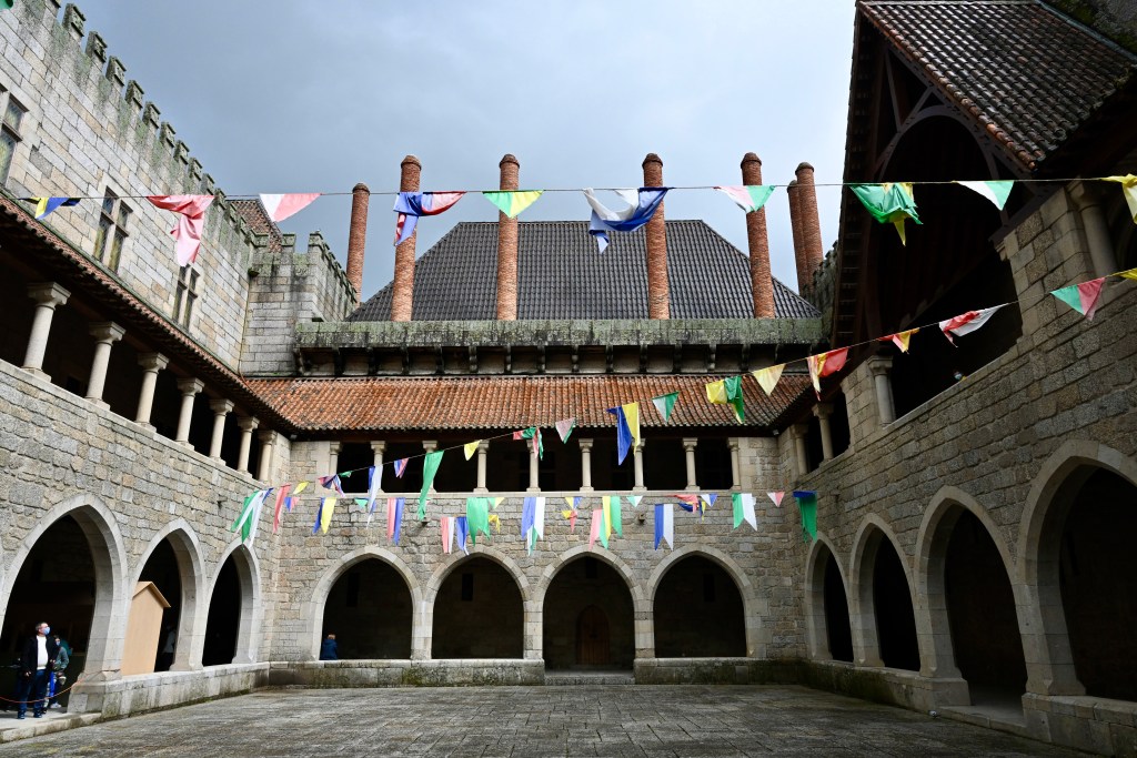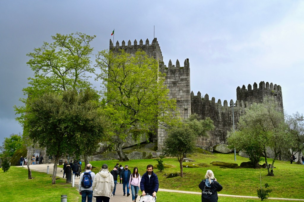 O centro histórico de Guimarães é muito bem preservado e charmoso. Destacam-se dois grandes edifícios: O Castelo de Guimarães ou Castelo de São Miguel e o Paço dos Duques. Os dois prédios ficam muito próximos um do outro. Estacionamos os carros nessa região do centro histórico e fomos visitar os dois edifícios.