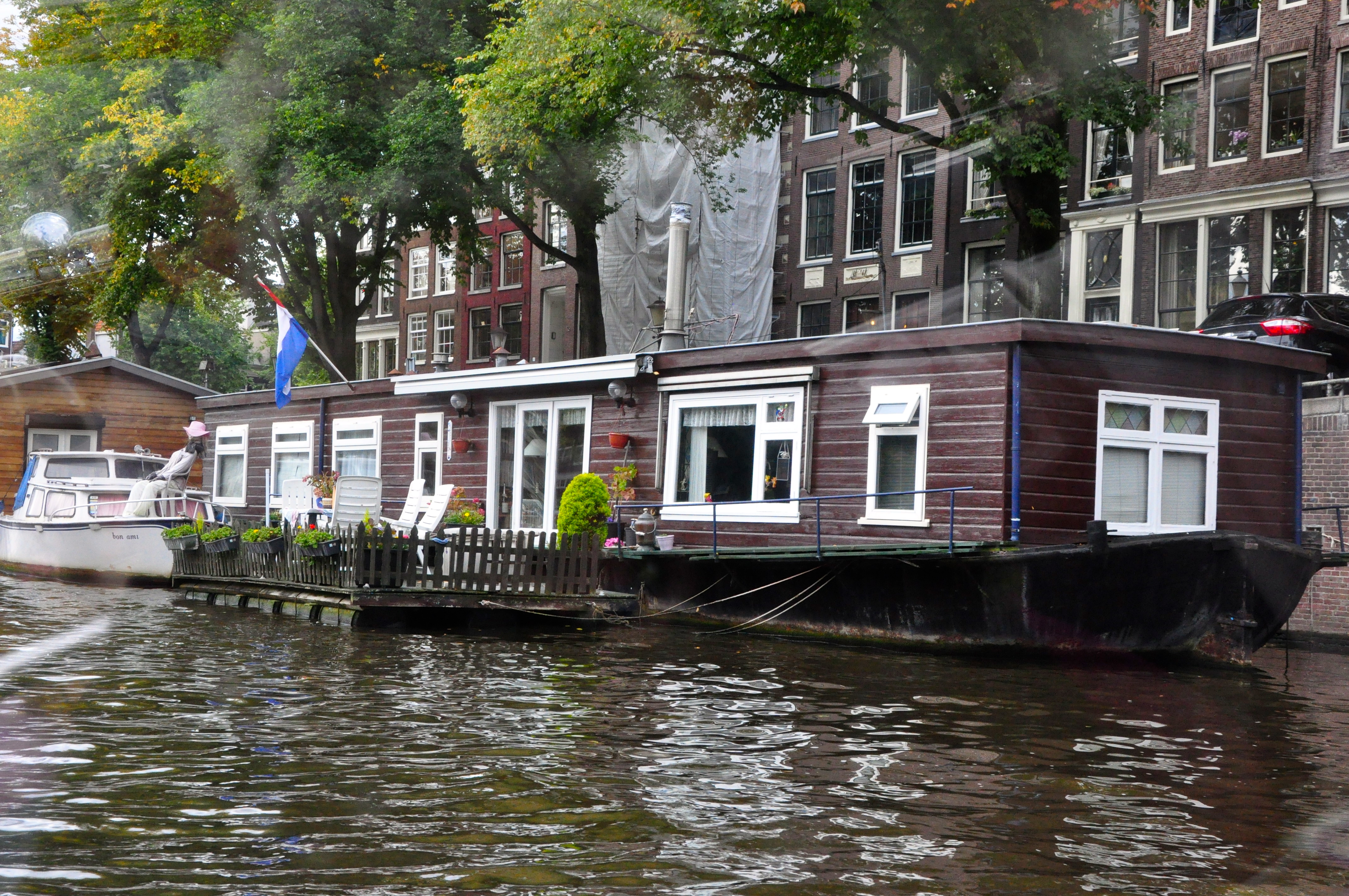 Seguimos até o porto, onde chama a atenção a grande quantidade de barcos parados que são transformados em residência. Viver nesses barcos, livra o cidadão de impostos prediais. Hoje isso é um problema para Amsterdam, pois a quantidade de barcos/residência é muito grande. As casas flutuantes estão ligadas á rede de água, eletricidade, gás e esgoto. Algumas possuem jardins, decks, etc.
