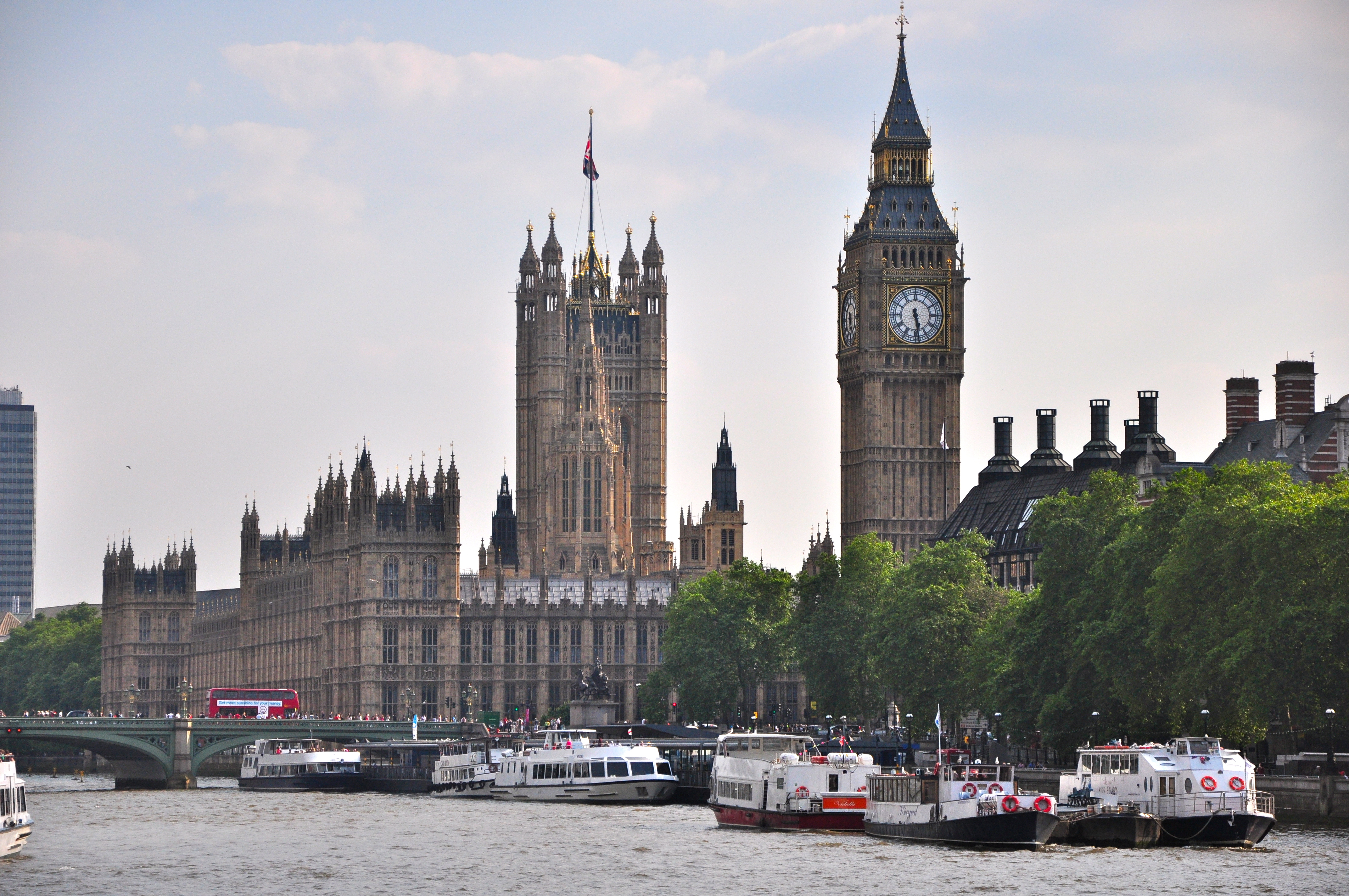 Paramos na Ponte de Westminster e pegamos um cruzeiro pelo Rio Tâmisa, que já está incluso no ticket do ônibus. O ônibus e o cruzeiro são boas opções para começar a visita, pois nos dá uma idéia mais abrangente sobre a cidade e depois escolhemos o que queremos ver com mais calma.