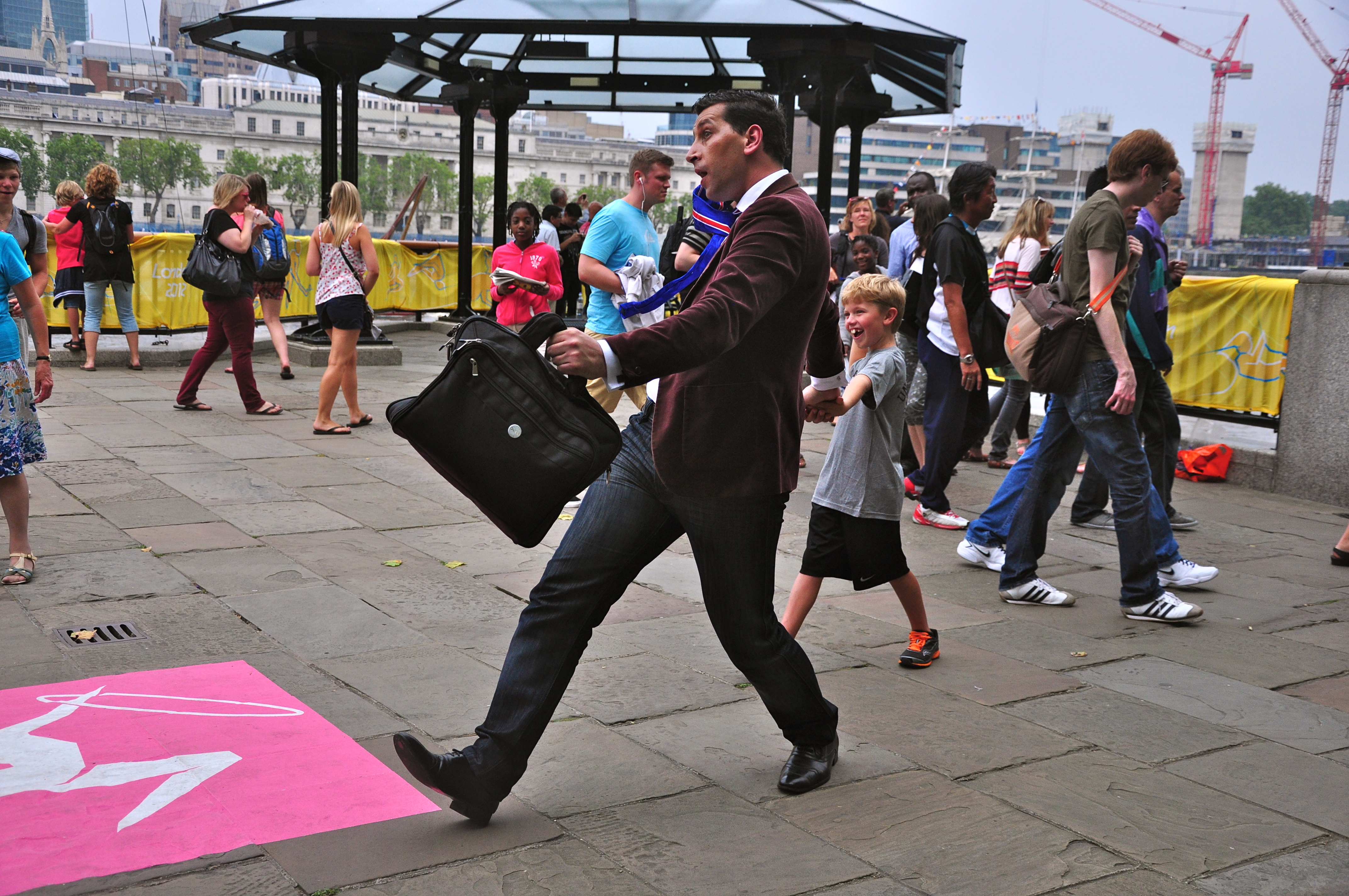Na beira do rio aparecem calçadões e boas opções de caminhada. São vários os restaurantes e pontos de visitação. Muitos turistas, vários londrinos, artistas de rua e todo tipo de gente. Londres é uma das cidades mais cosmopolitas do mundo.