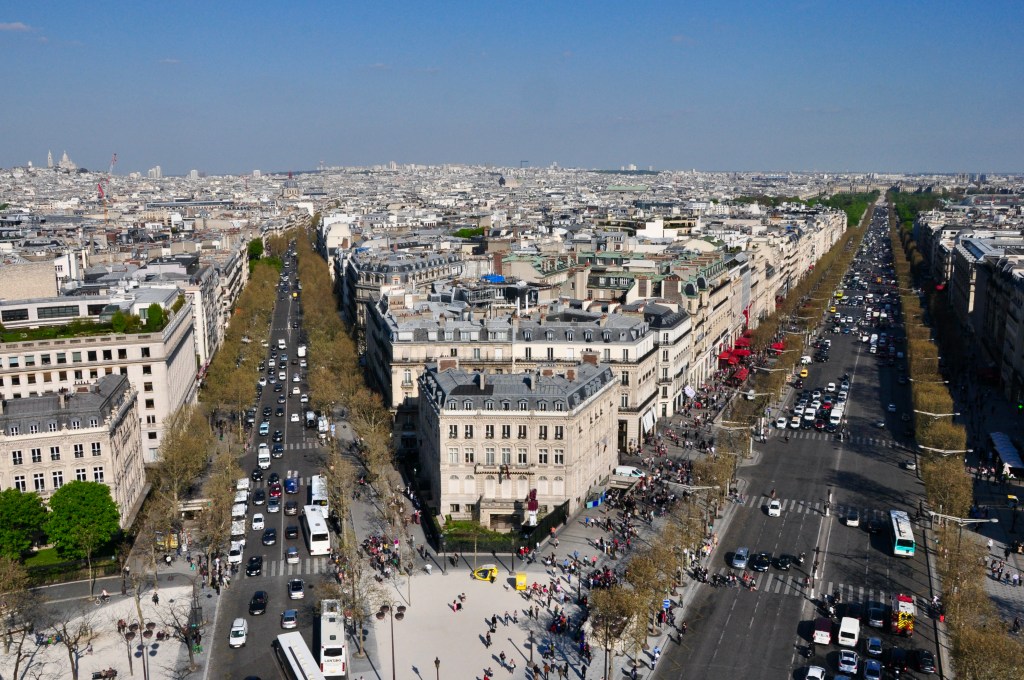 O Barão Haussmann fez a mais profunda intervenção urbana que o mundo jamais tinha visto. Foi prefeito de Paris de 1853 a 1870. Ficou conhecido como o “artista demolidor”. Destruiu uma boa parte da cidade antiga, criando avenidas largas e planejadas. O Arco do Triunfo na Praça l’Étoile é o ponto de convergência. Daí partem doze avenidas espetaculares em forma de estrela. Dentre elas a Champs-Elyssées.
