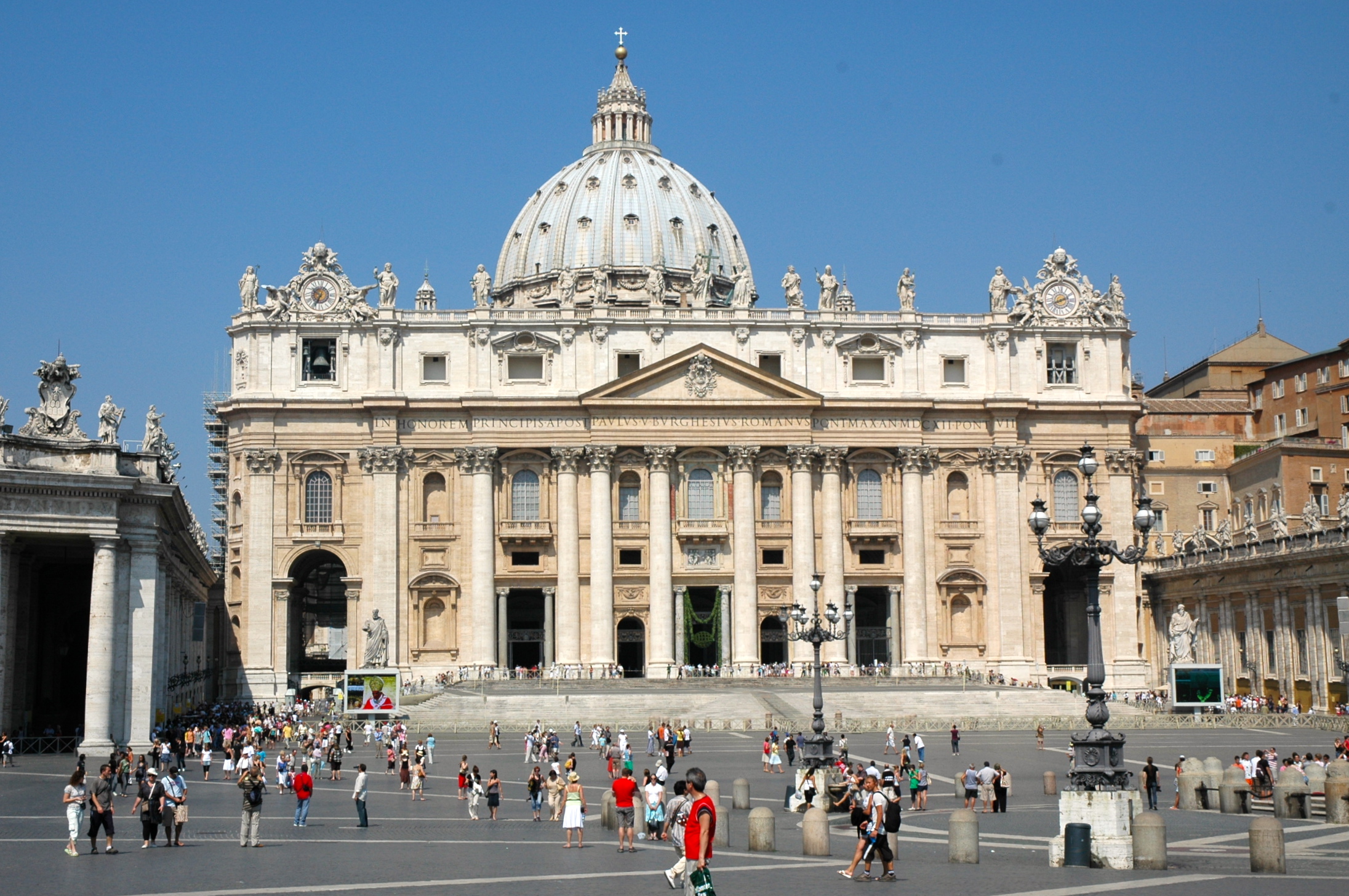Na Praça de São Pedro destacam-se a Basílica e o Museu do Vaticano. A Basílica é a mais importante igreja católica do mundo e atrai peregrinos e turistas o ano inteiro. Ocupa uma área de 2,3 hectares, possui 186 metros de extensão e pode abrigar até 60 mil devotos.
