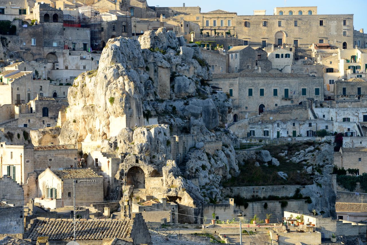 Foi morada troglodita de povos antigos, que escavaram a rocha para criar cavernas. As cavernas foram transformadas em casas ocupadas até hoje. Algumas delas são igrejas e outras viraram museus. Matera parece uma cidade fictícia.