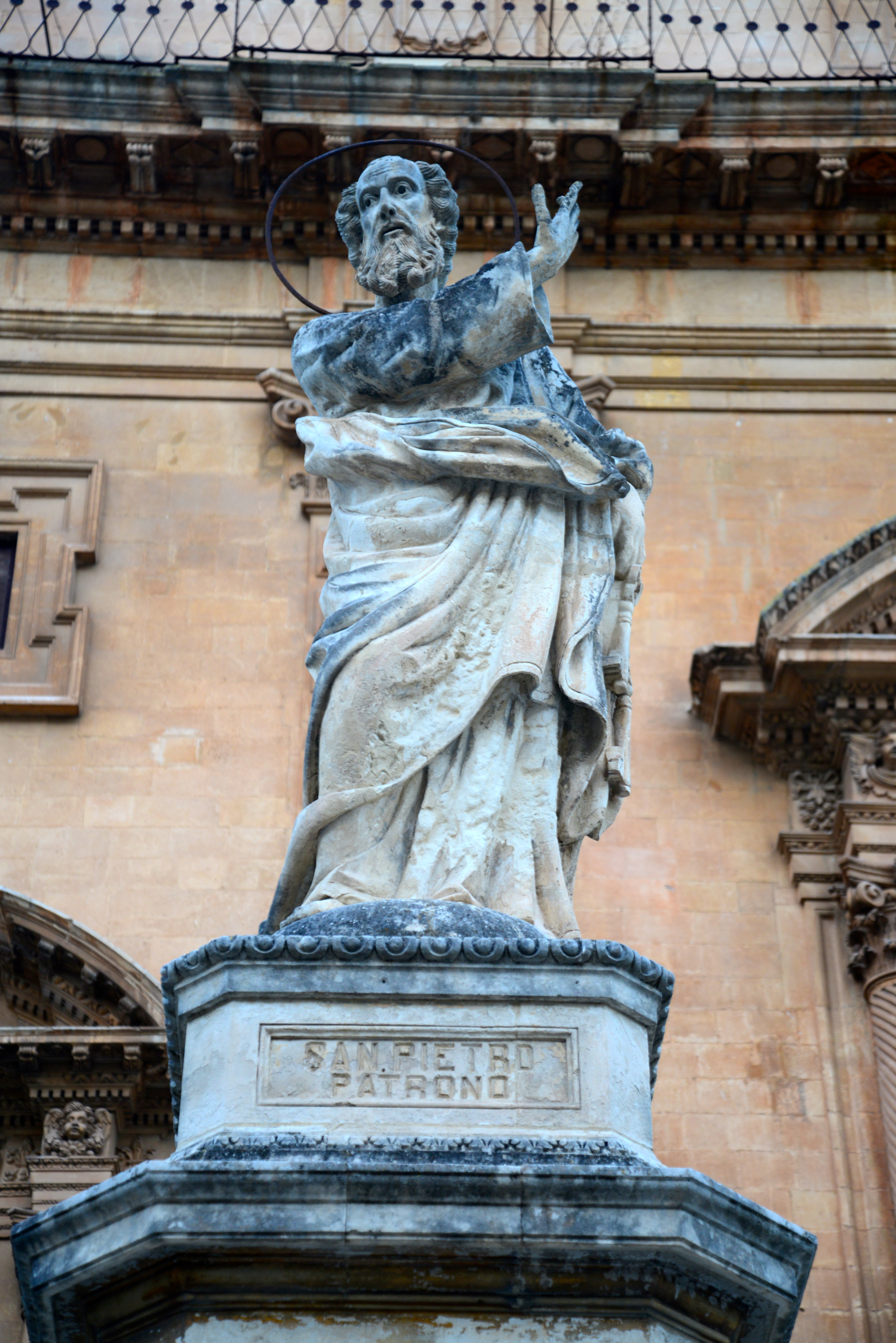 Aí na parte baixa da cidade fica a Igreja de São Pedro, do século XIV, mas que foi reconstruída no século XVIII, após o terremoto de 1693. A igreja possui uma bela escadaria na frente, com imagens de São Pedro, o padroeiro da cidade e São Paulo.
