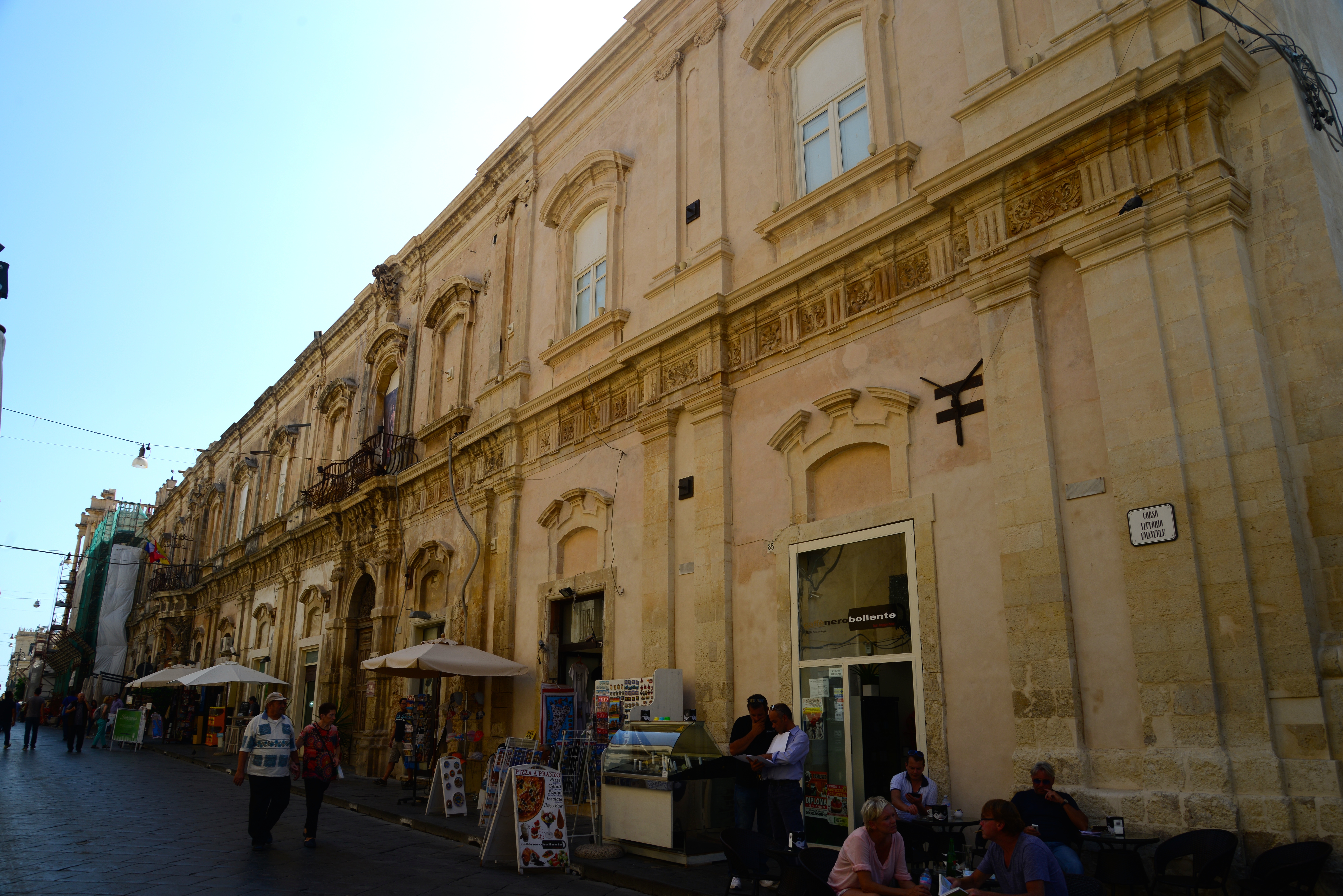 Em Noto fomos direto para o centro histórico, no Corso Vittorio Emanuele, onde ficam as principais manifestações arquitetônicas da cidade, que foi reconstruída no início do século XVIII para substituir a Noto Antica, fundada pelos gregos no século IX a.C. e que foi totalmente destruída pelo terremoto de 1693. Hoje é um Patrimônio Mundial da UNESCO.