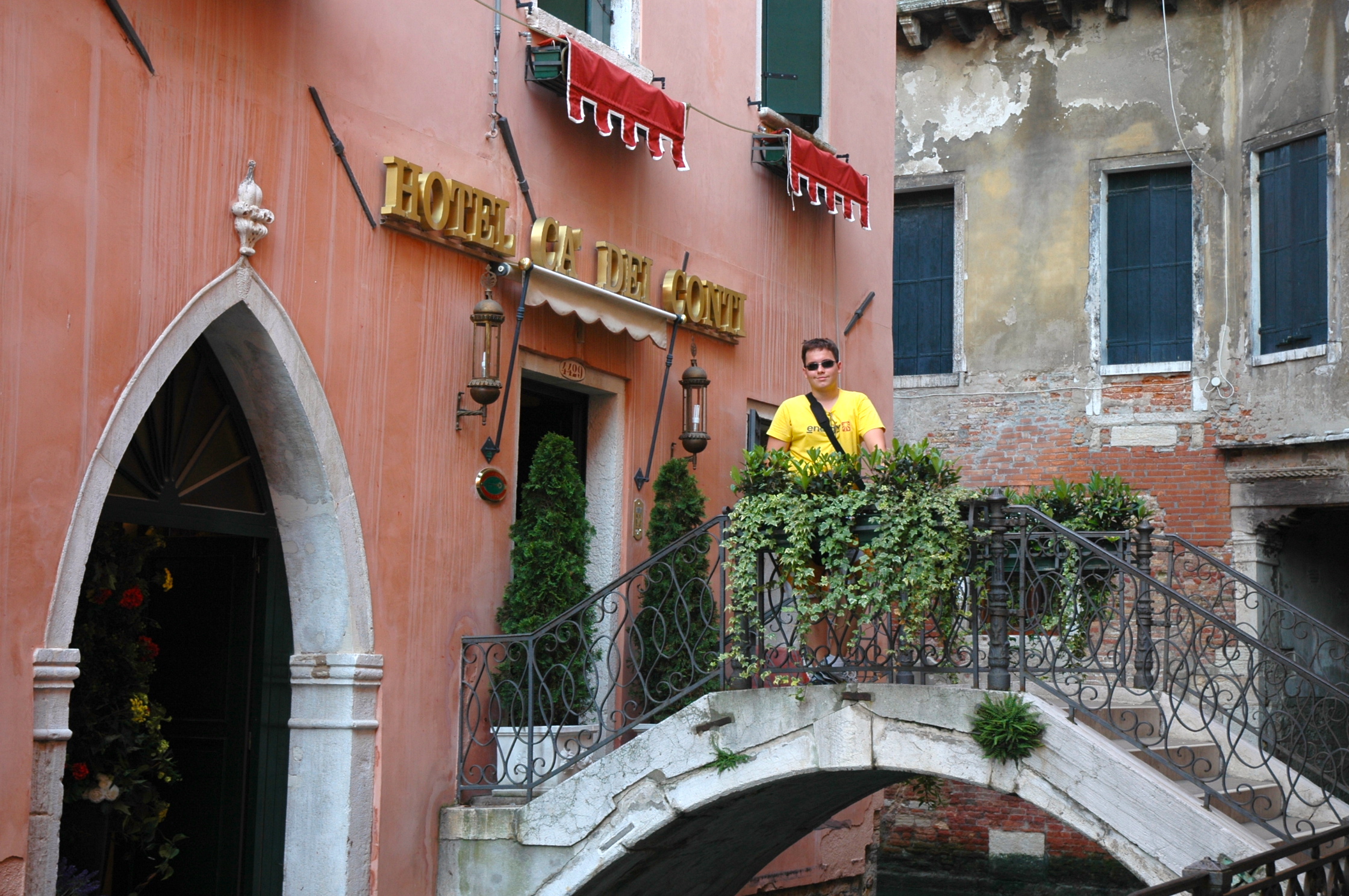 Ficamos hospedados no bom Hotel Ca Dei Conti. Encontrar o hotel é outro exercício interessante na cidade, pois Veneza é formada pequenas ruelas entrelaçadas por canais, de forma indisciplinada. O Ca Dei Conti fica numa dessas ruelas, na beira de um canal, a poucos metros da Praça São Marcos. A localização era excelente.